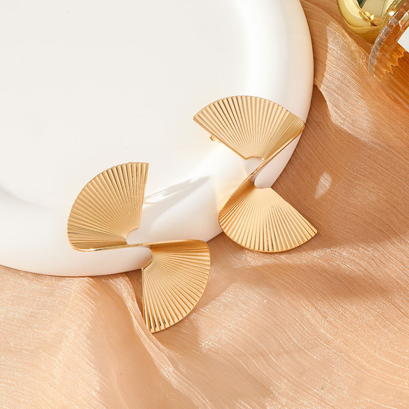 ヨーロッパとアメリカのクロスボーダーファッションデザインメタル光沢のある折りたたみイヤリングイヤリング女性のレトロな幾何学的な花びらイヤリング