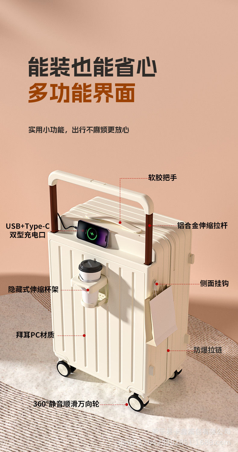 多機能スーツケースコップ万向輪ファスナー暗号箱小清新携帯電話カップ棚男女旅行箱卸売り