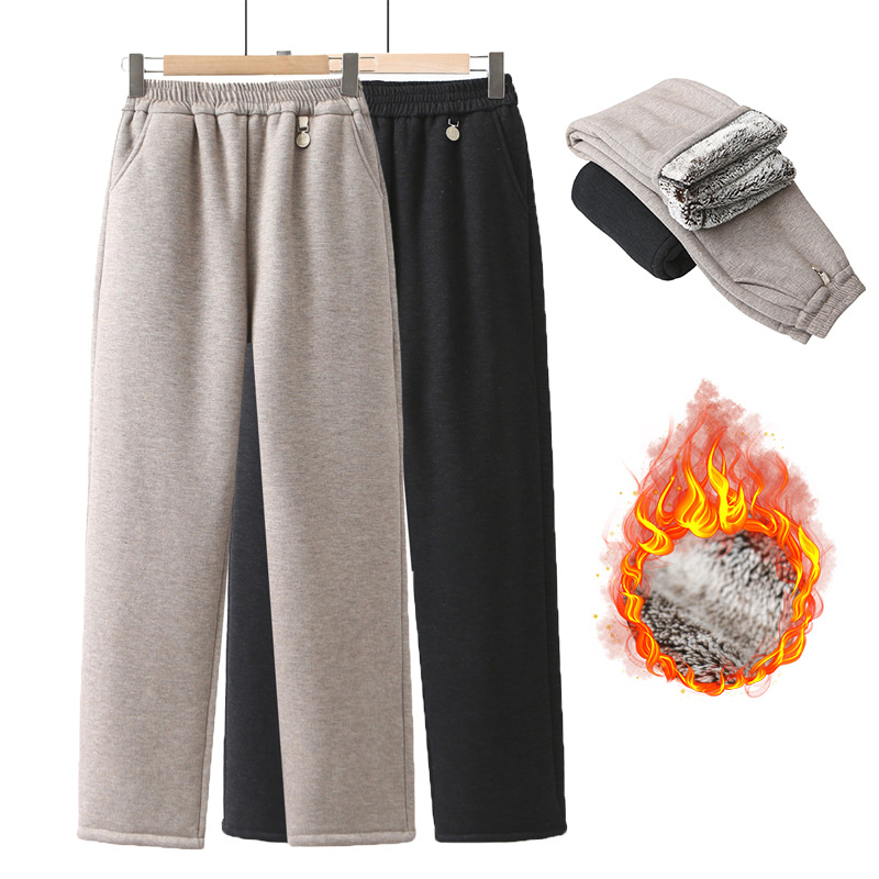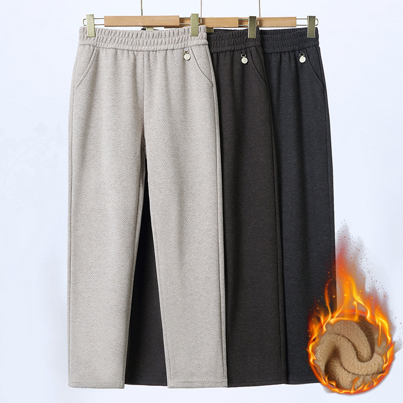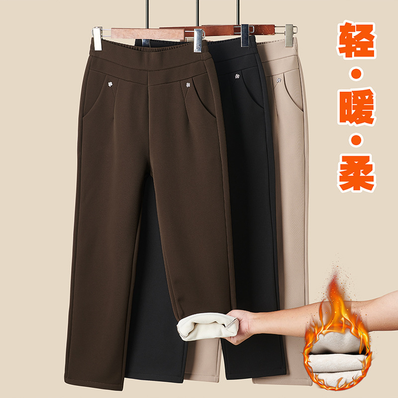 お母さんの秋冬の毛は、ベルベットの保温ストレートパンツの中で、高齢者の女装は腰が高くて痩せているストレートパンツを着ています