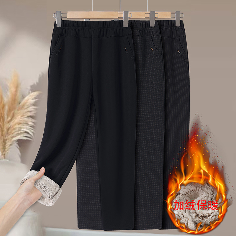 50岁妈妈秋冬加绒裤子中老年女裤高腰春秋直筒裤奶奶外穿保暖长裤