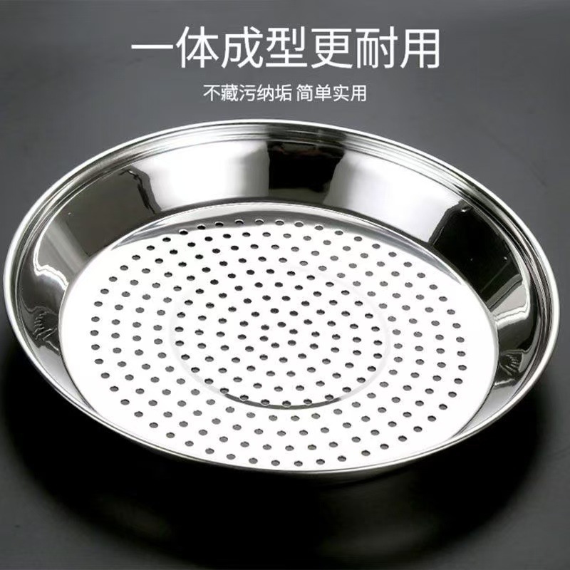 ステンレス製中華鍋蒸し器、蒸し籠、水蒸しラック、蒸し籠、厚手丸型家庭用細孔水切り皿