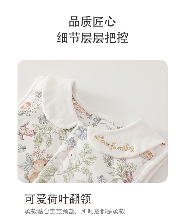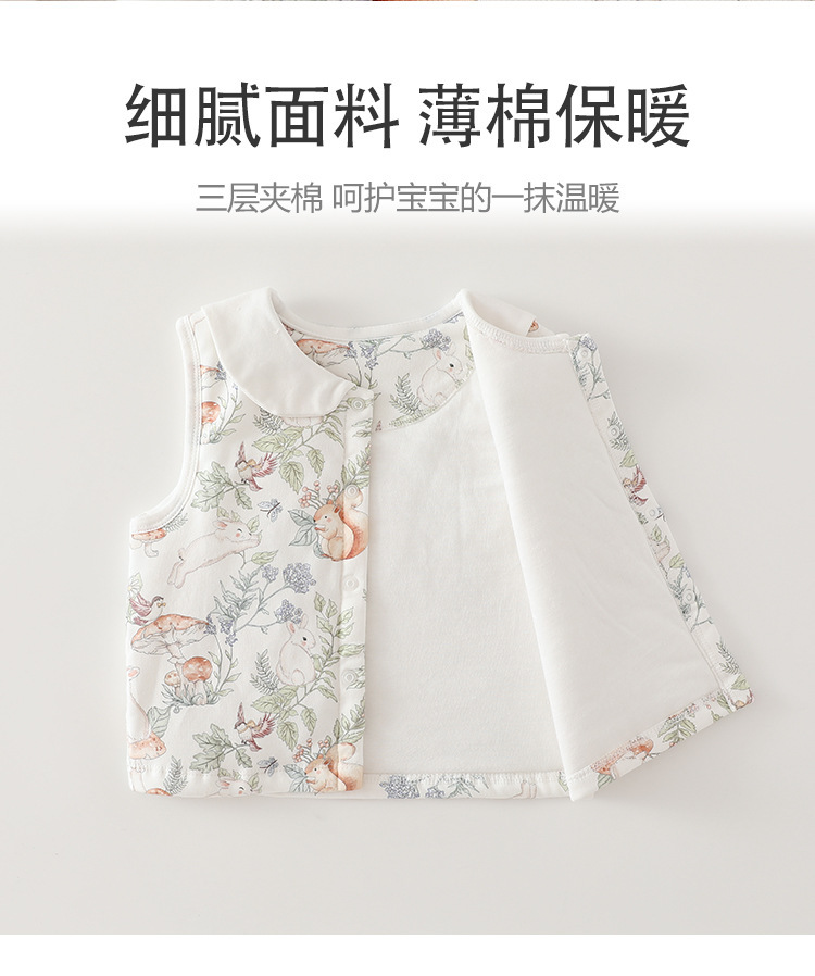 ベビーベスト秋冬綿の薄い綿を挟んで保温します。
