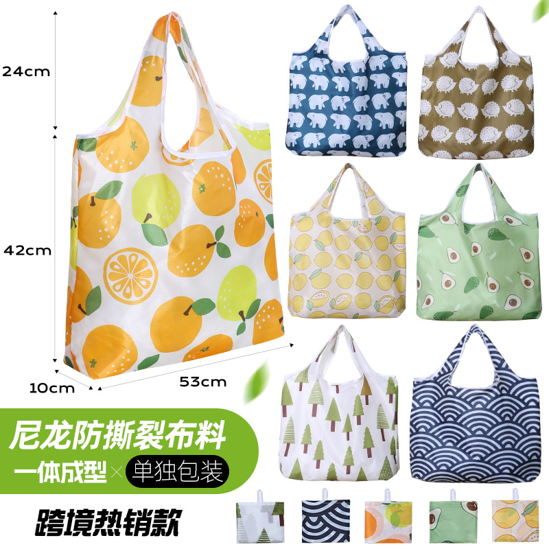 新しい在庫ナイロン環境に優しい折りたたみショッピングバッグ大容量折りたたみトートバッグプリントクリエイティブポータブル環境に優しいバッグ