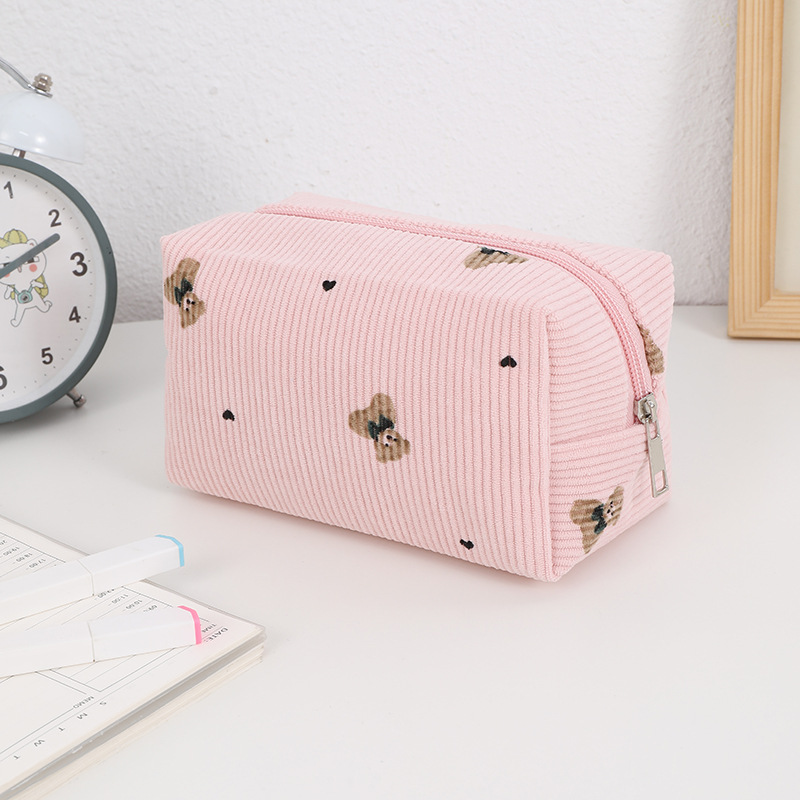 コーデュロイ化粧バッグ高颜値蝶結び携帯用大容量韓国風洗面バッグ収納バッグ