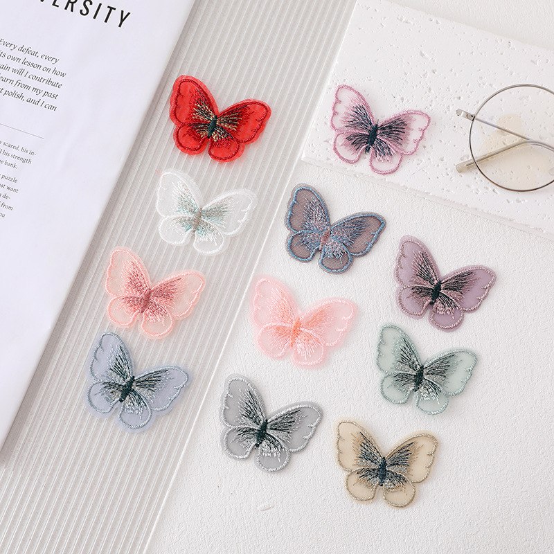 5cmオーガンジー刺繍蝶パッチ薄手シフォン模造蝶DIYヘアピンヘアアクセサリー布パッチ子供服靴下装飾