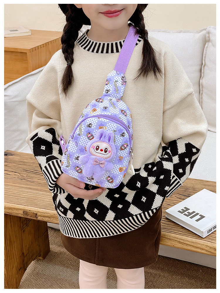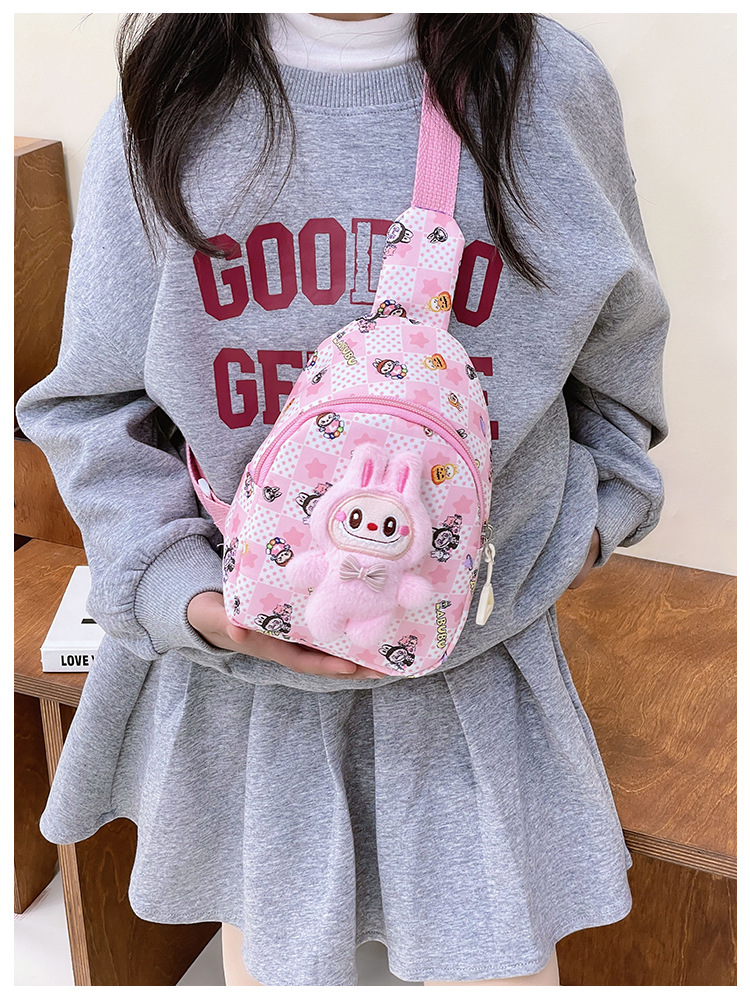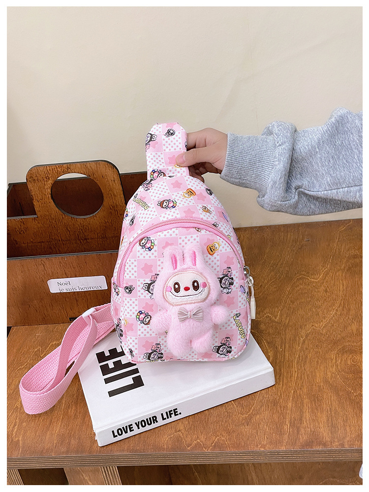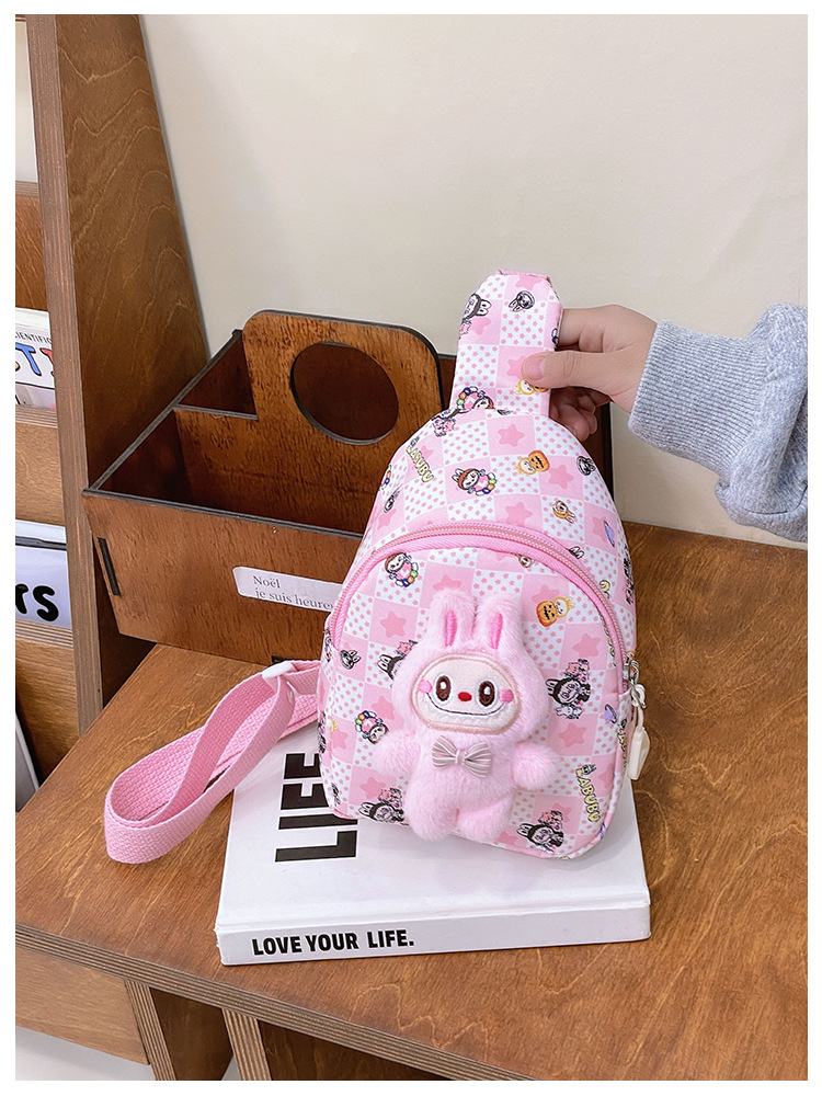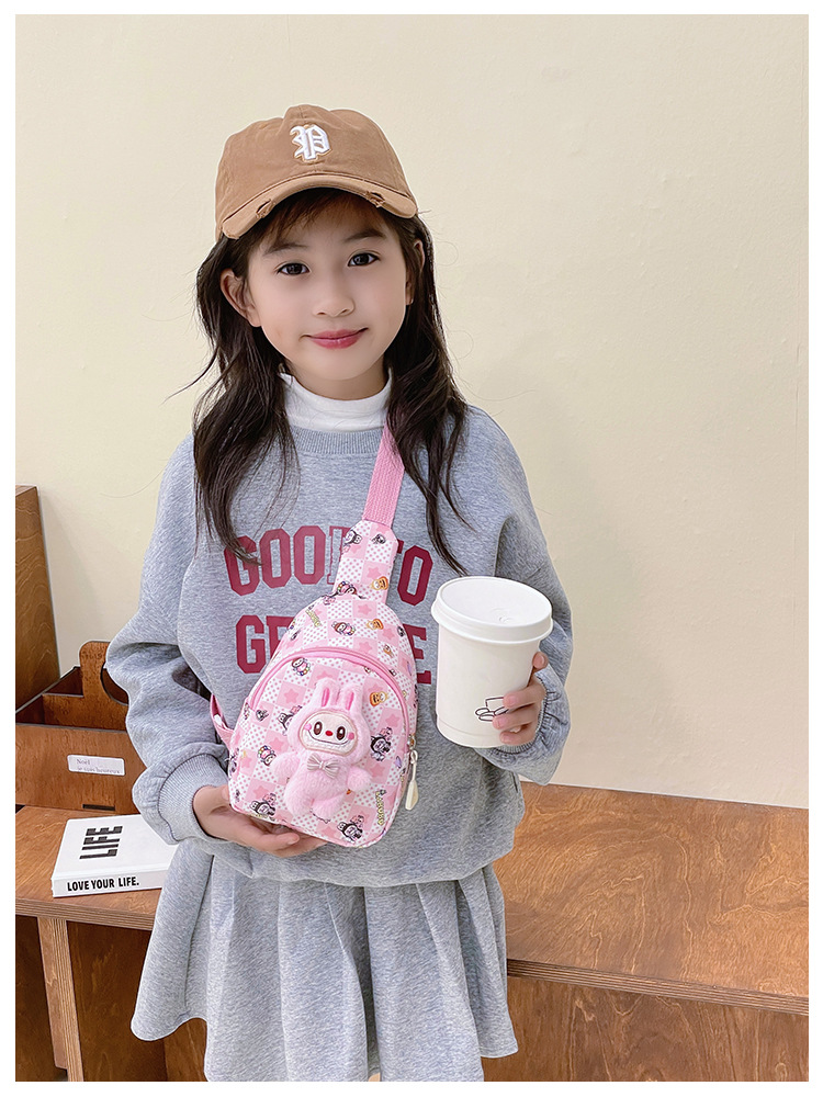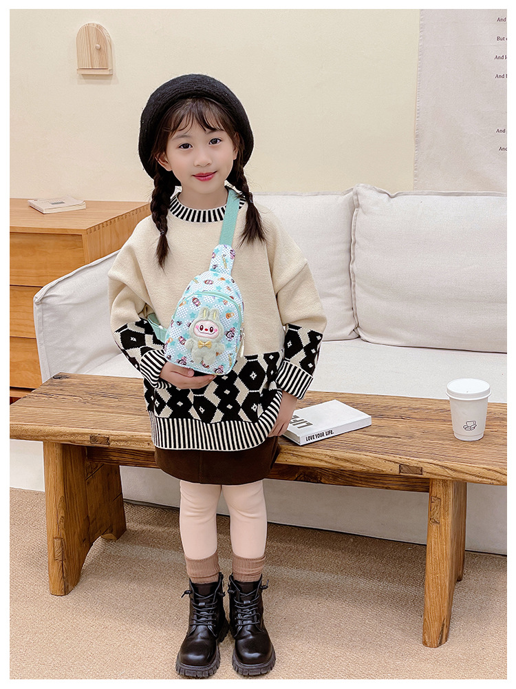 新しい子供のチェストバッグ少年少女漫画ラブブプリントウエストバッグカジュアルメッセンジャーバッグベビー小銭入れ