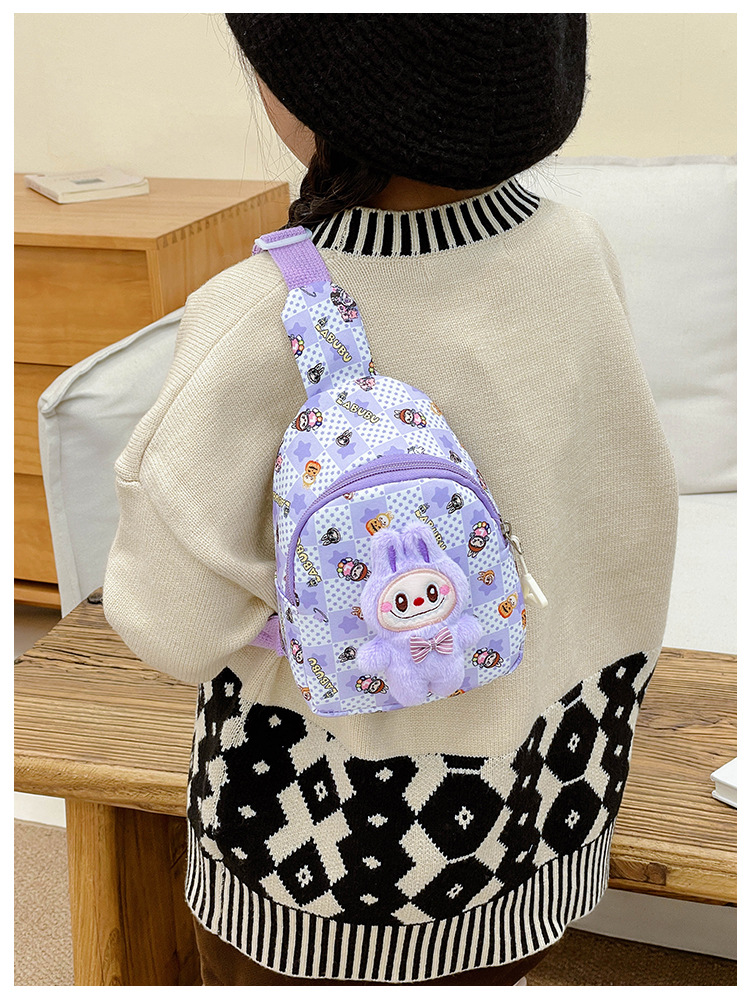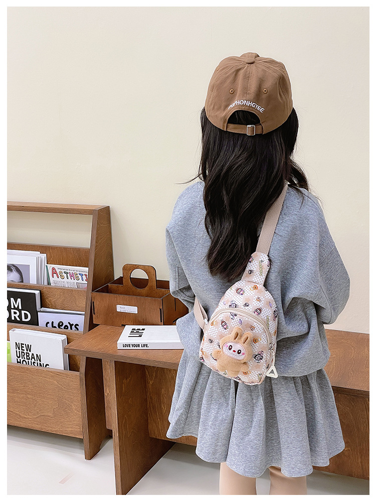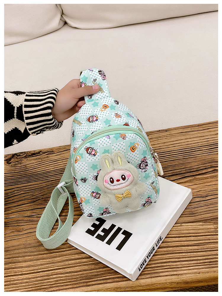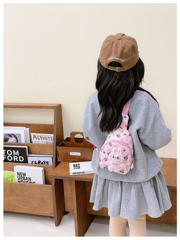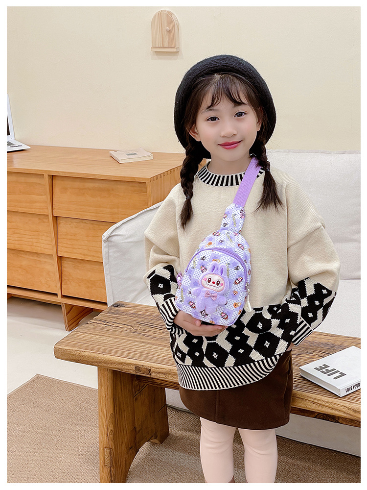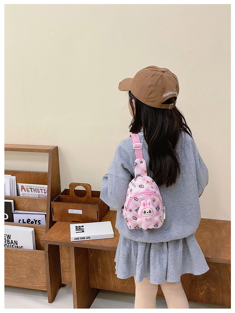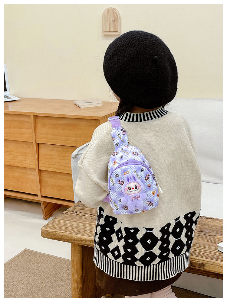 新しい子供のチェストバッグ少年少女漫画ラブブプリントウエストバッグカジュアルメッセンジャーバッグベビー小銭入れ