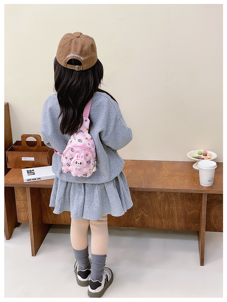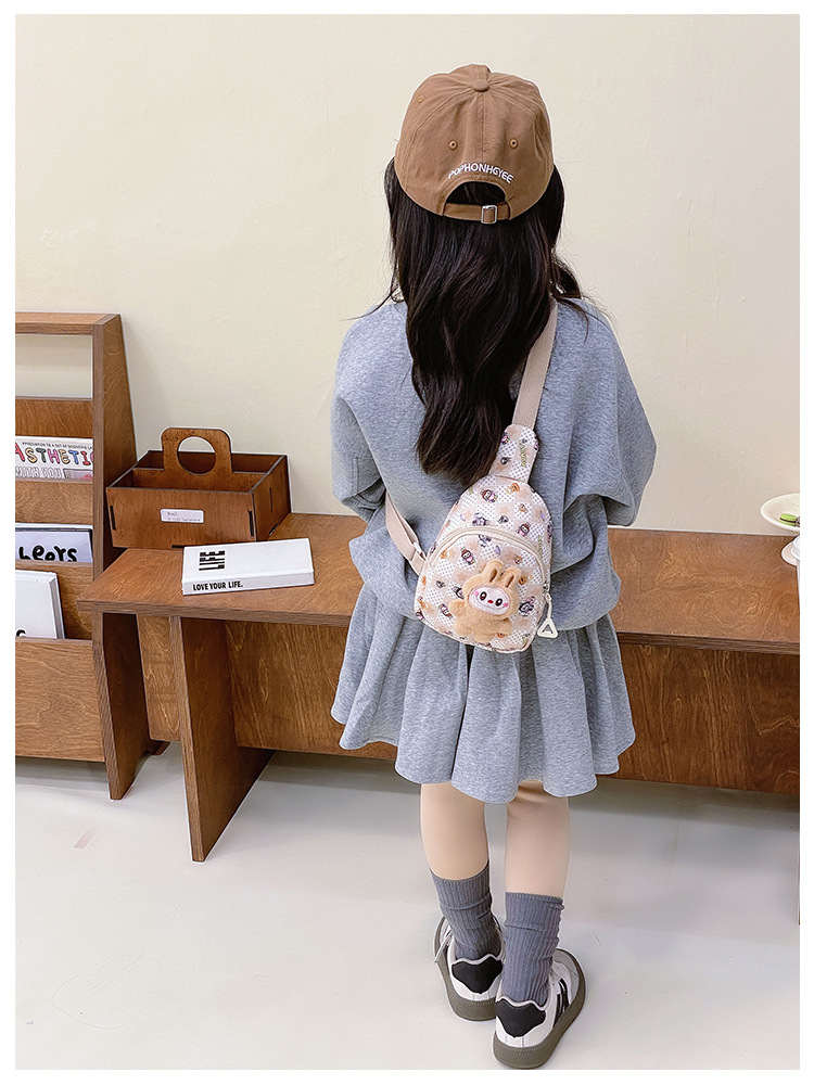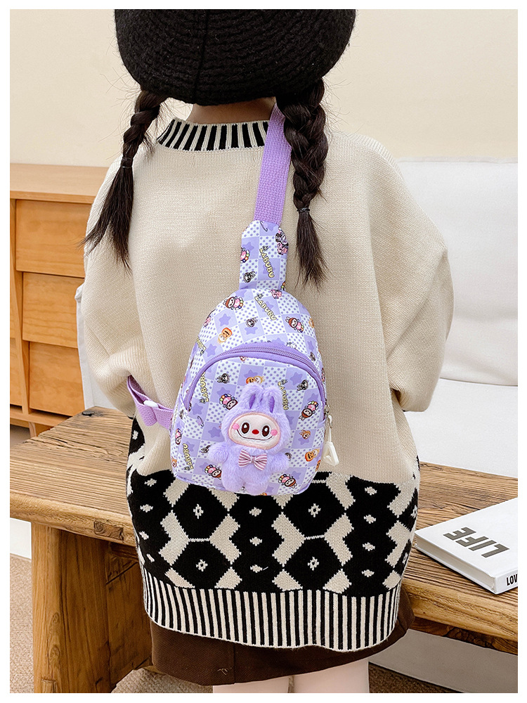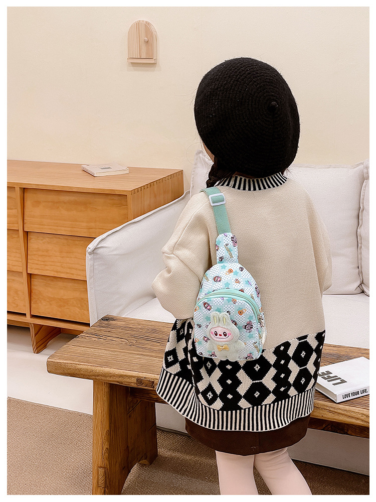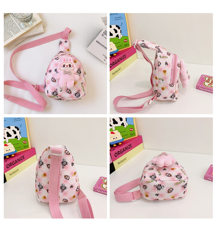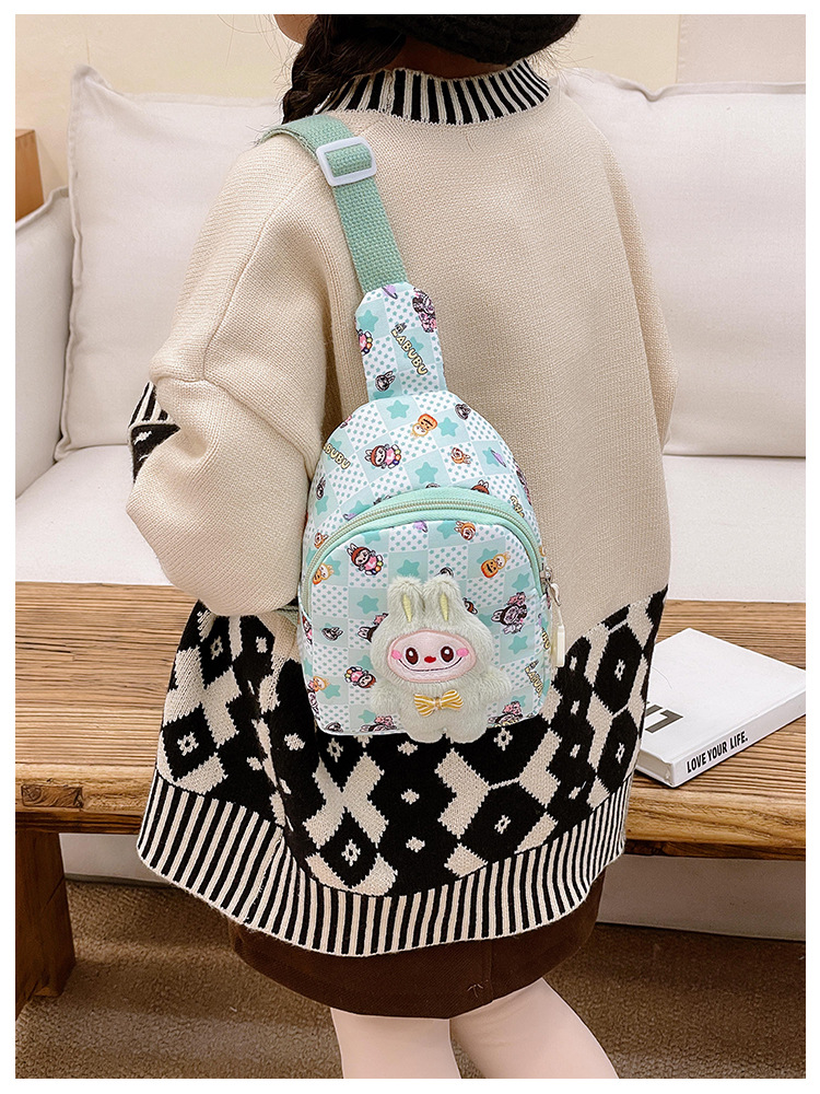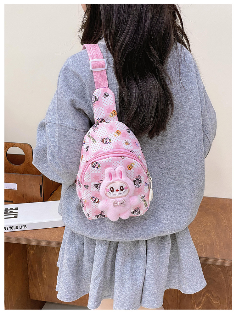 新しい子供のチェストバッグ少年少女漫画ラブブプリントウエストバッグカジュアルメッセンジャーバッグベビー小銭入れ