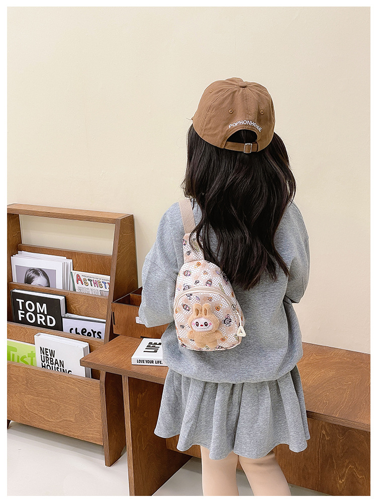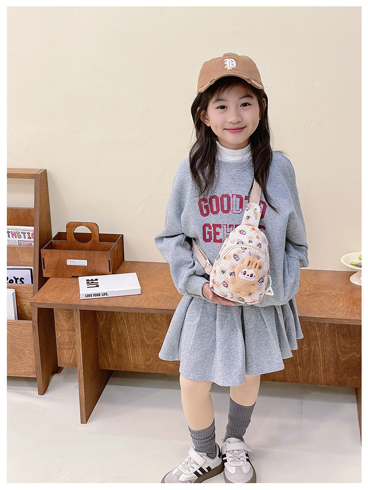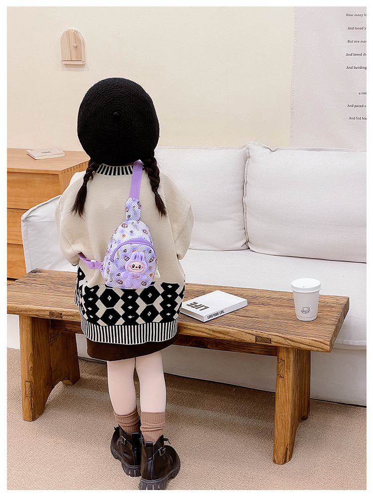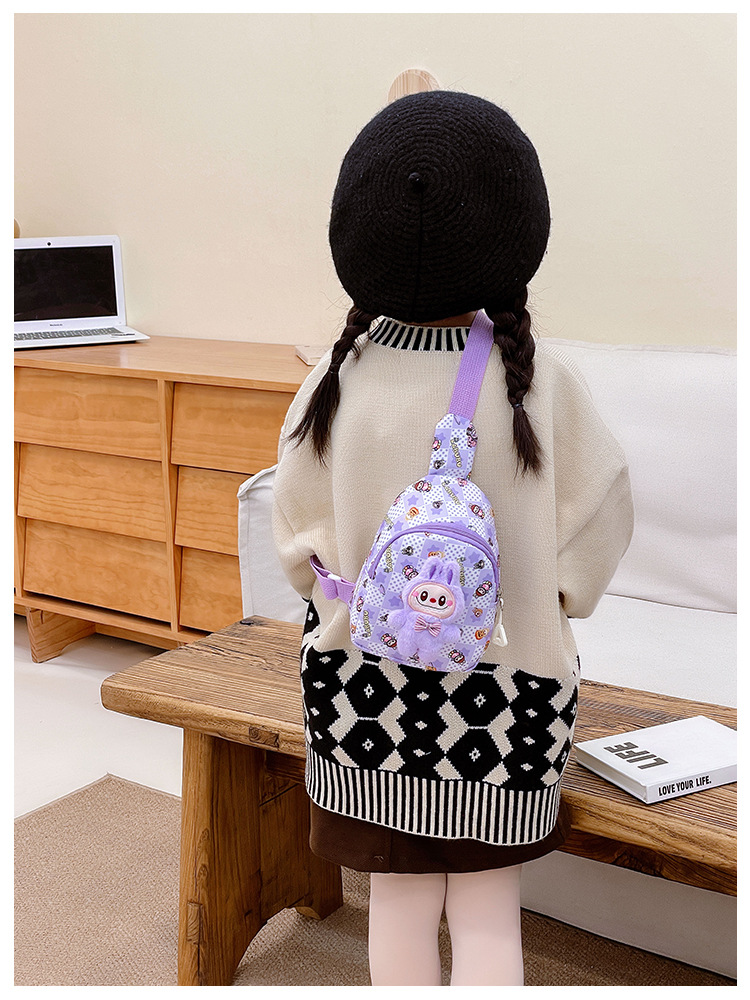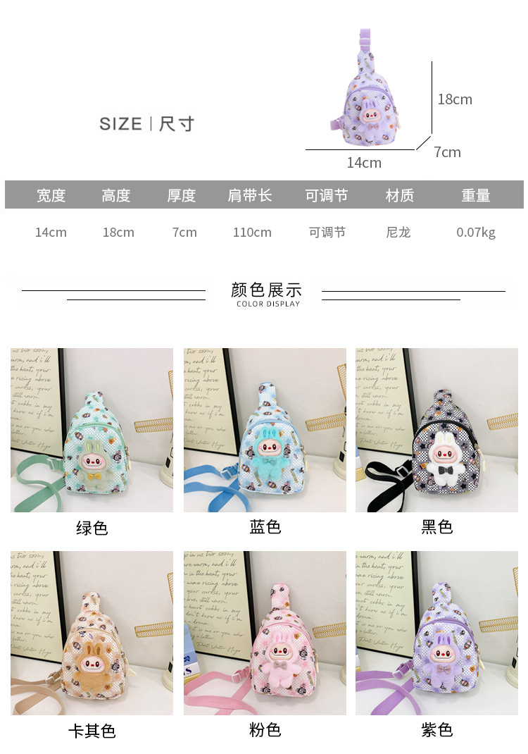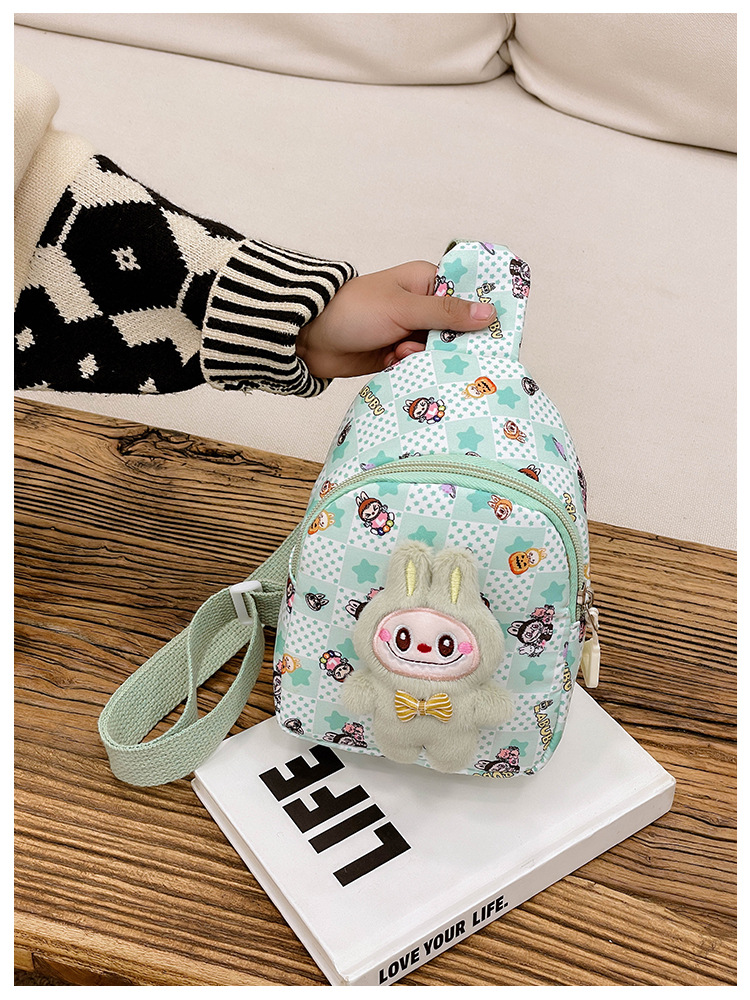 新しい子供のチェストバッグ少年少女漫画ラブブプリントウエストバッグカジュアルメッセンジャーバッグベビー小銭入れ