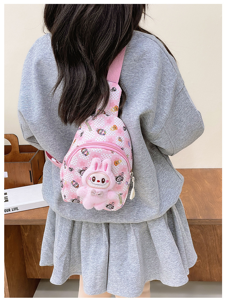 卡通胸包时尚可爱labubu男女童外出休闲零钱包单肩斜挎包儿童背包