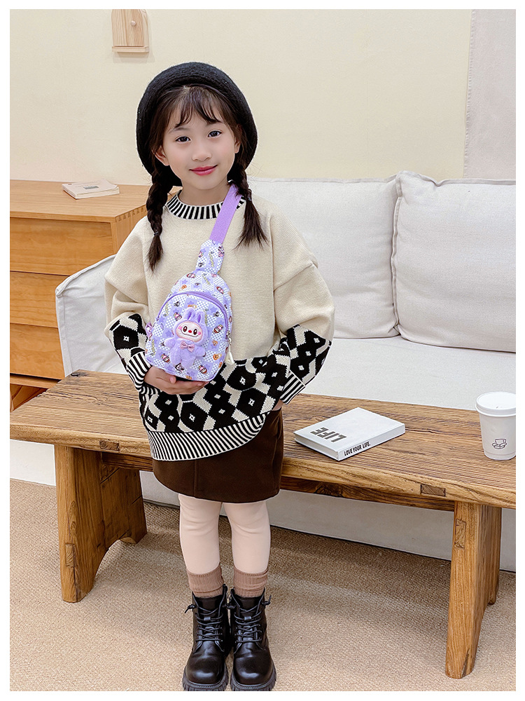 秋冬の新型子供の胸の包みのかわいいぬいぐるみのlabubuのショルダーバッグの漫画の人形の男女の子供の軽やかな斜めのショルダーバッグ