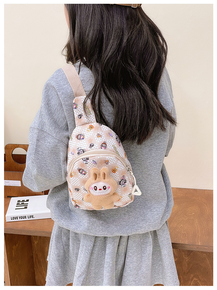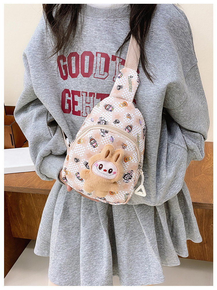 泡泡玛特拉布布胸包新款卡通可爱男女儿童胸包外出休闲斜挎小背包