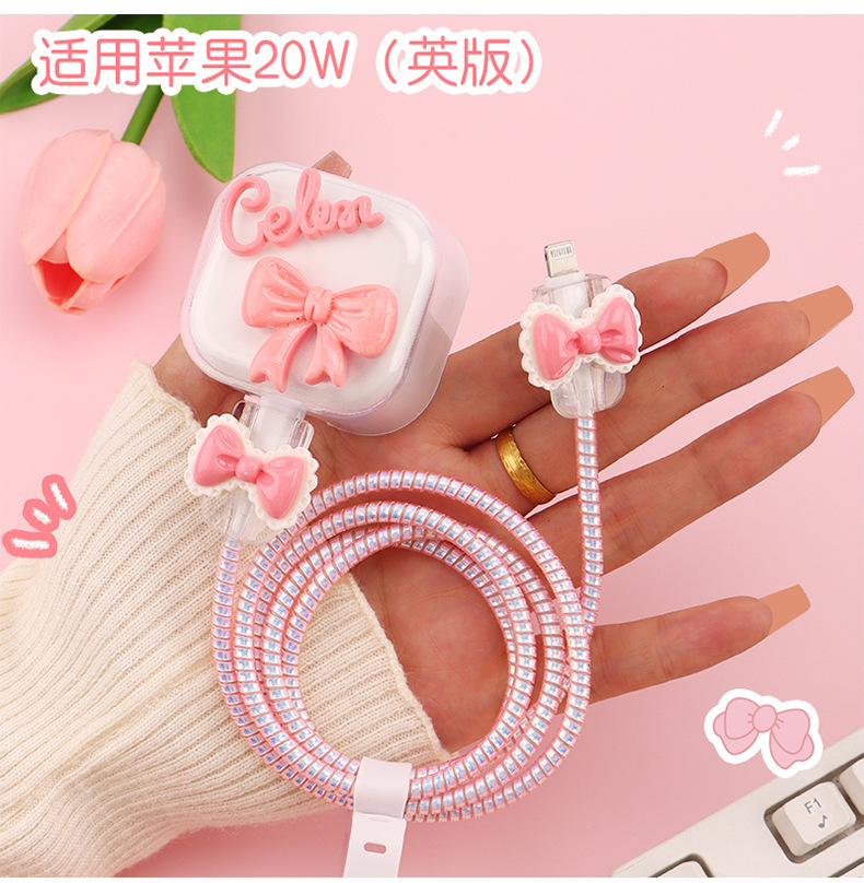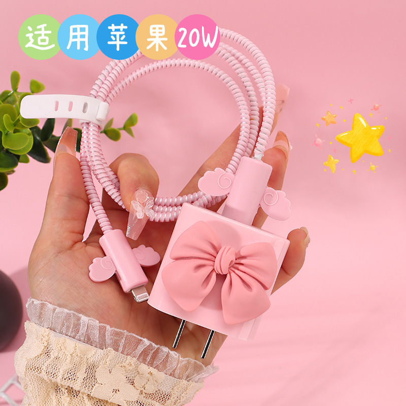新款蝴蝶结闪钻充电器保护套适用苹果快充头保护套英规20W