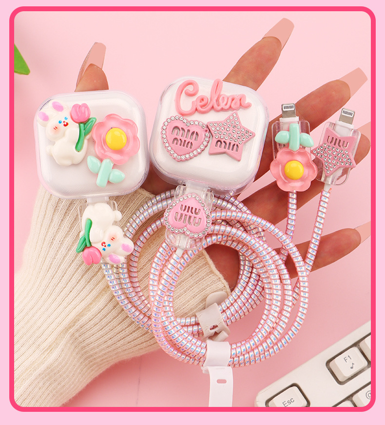 ピンクの桜はリンゴ14のデータケーブル巻き保護カバー20w充電器保護ケースかわいいDIYアニメを適用します。