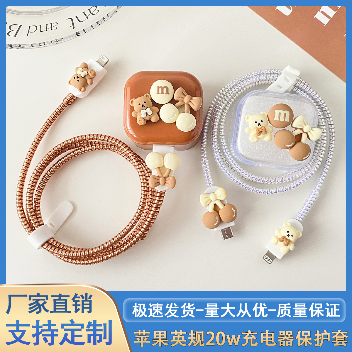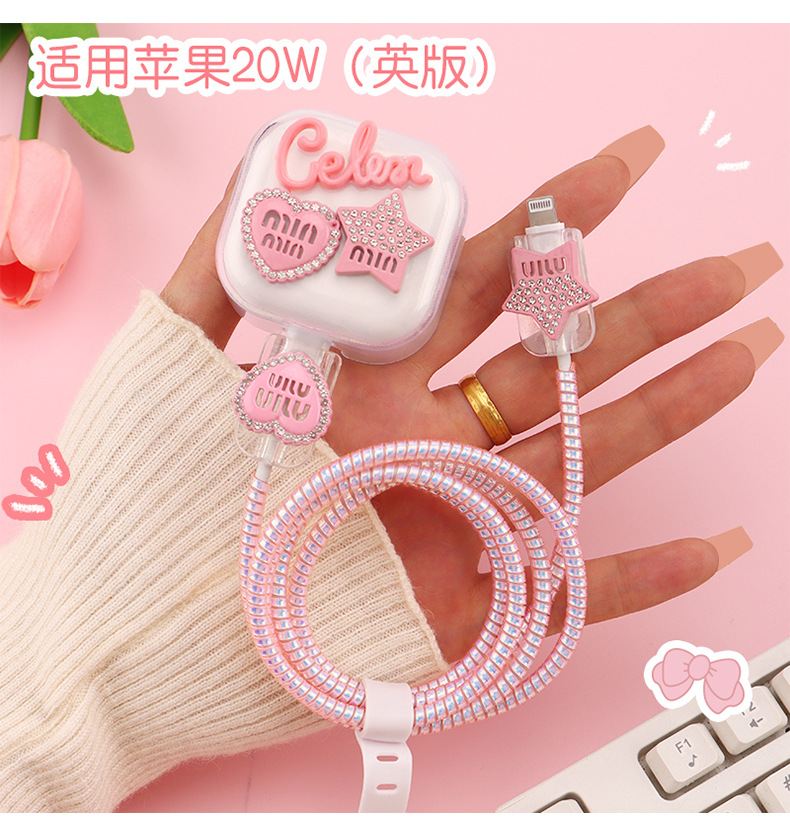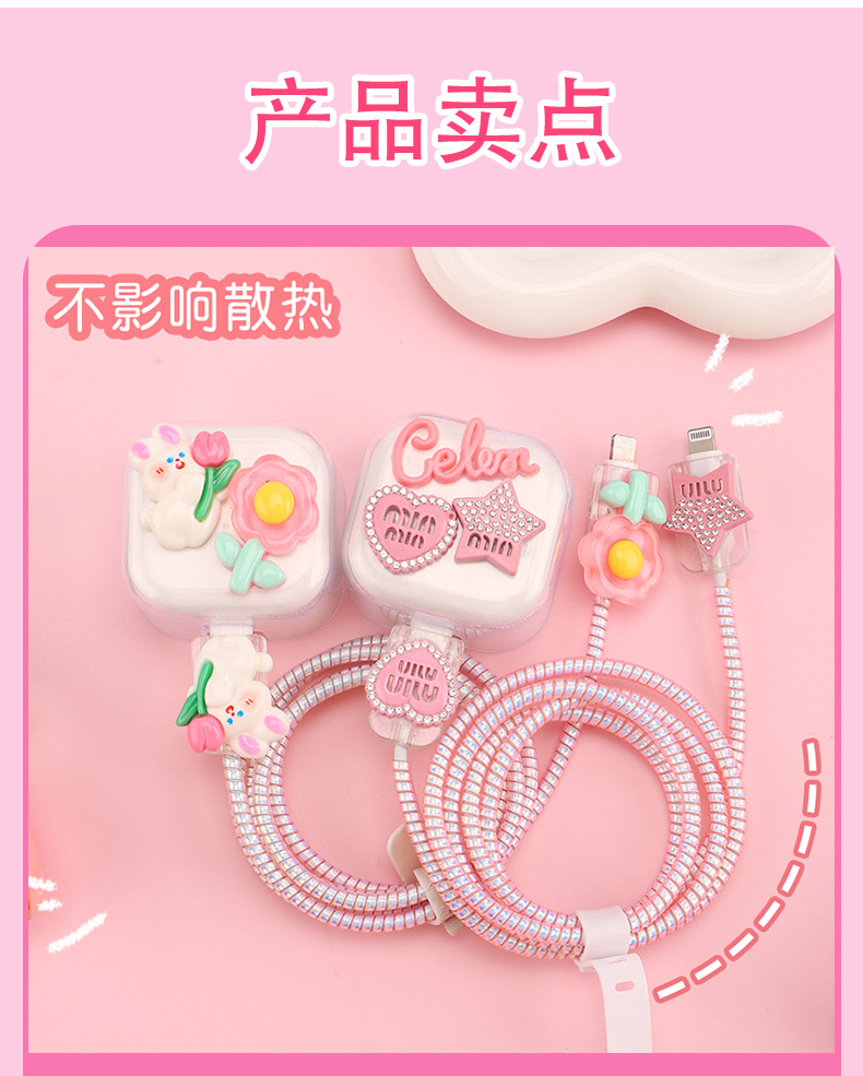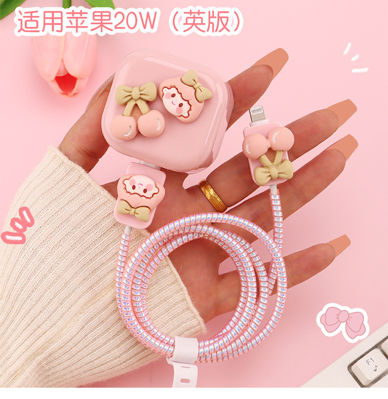 少女粉色系列数据线保护套20w适用苹果快充iPhone软充电器壳