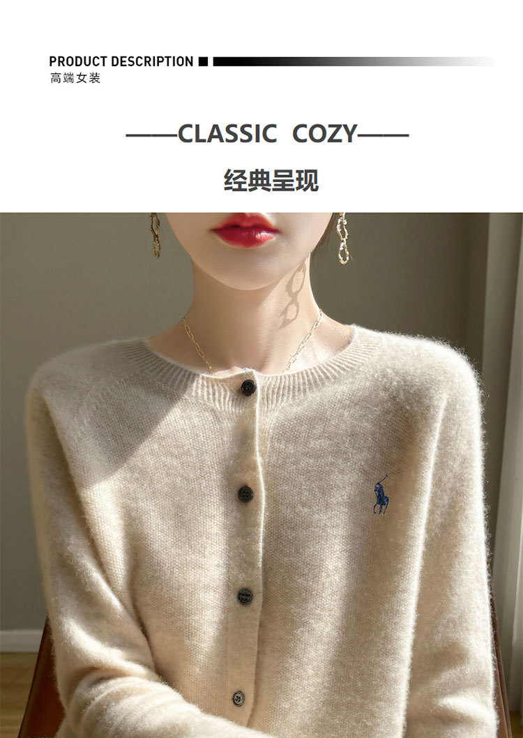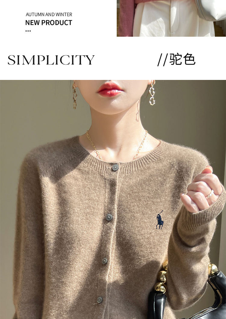【厂家直供】圆领开衫外套毛衣女秋季新款时尚宽松减龄外搭针织衫