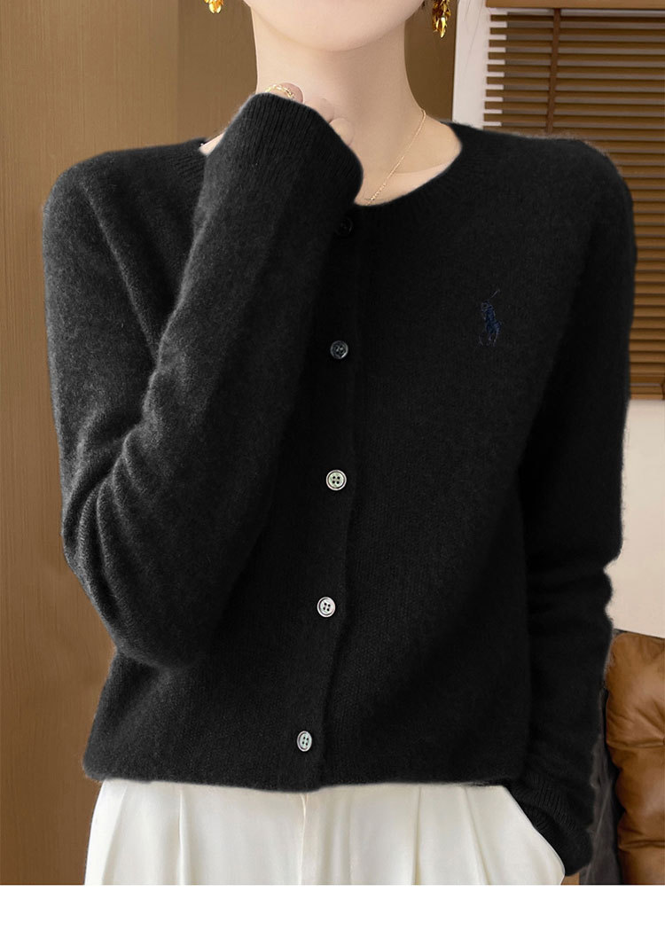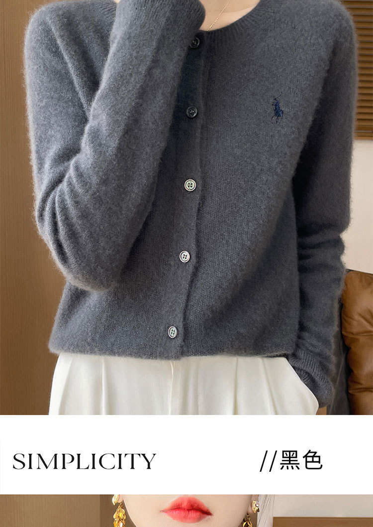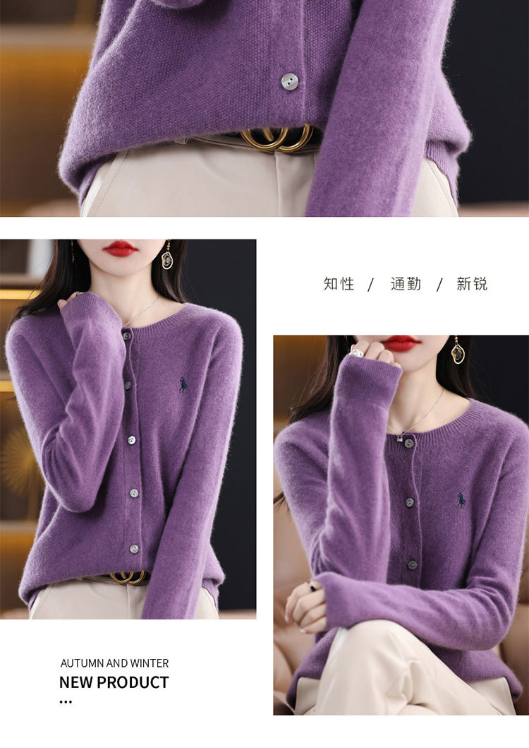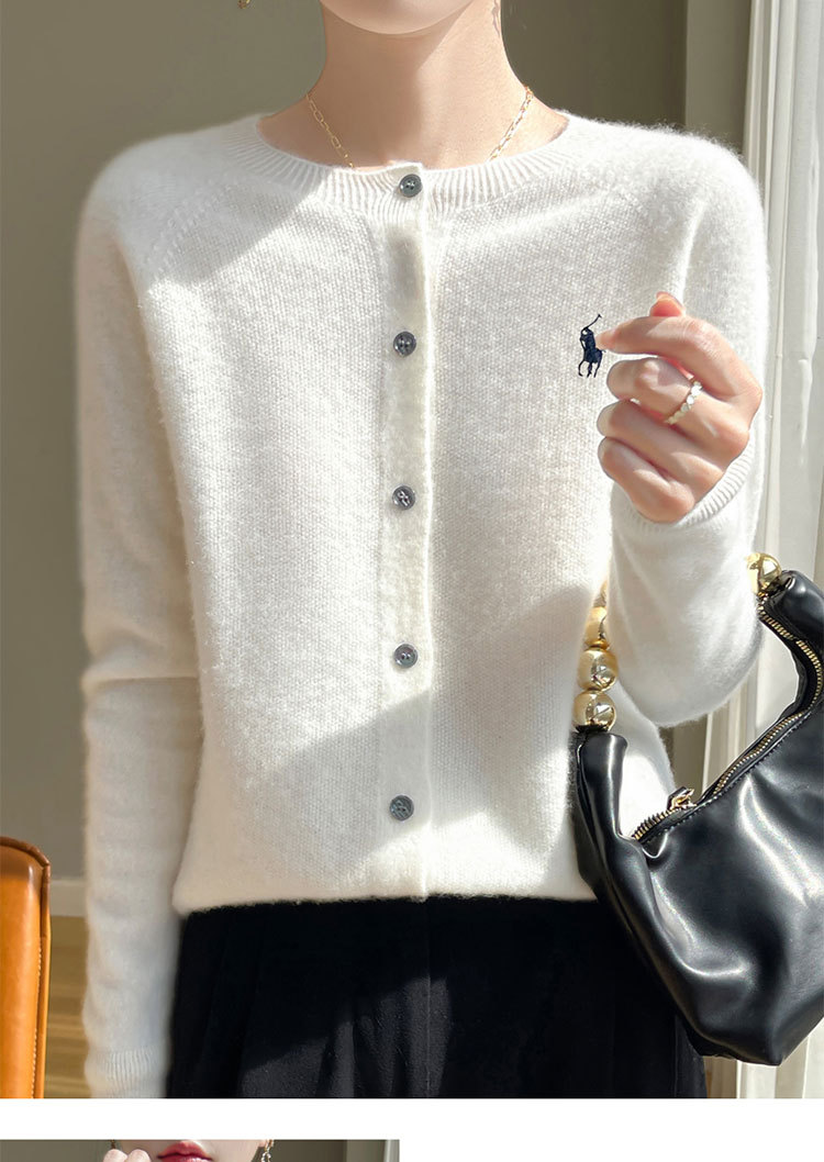 【一流衣料】秋の新作ラウンドネックニットカーディガンジャケット レディース 無地刺繍入り万能レディースセーター トレンド