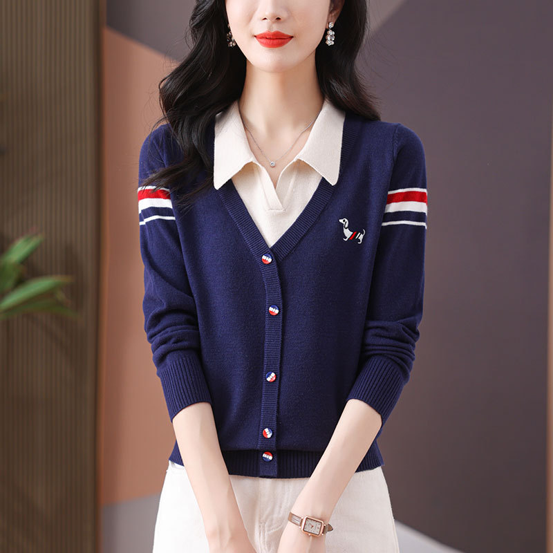 【メーカー直供】偽のニットセーターを2枚めくった女性の秋の新しい色合わせの女性の上着
