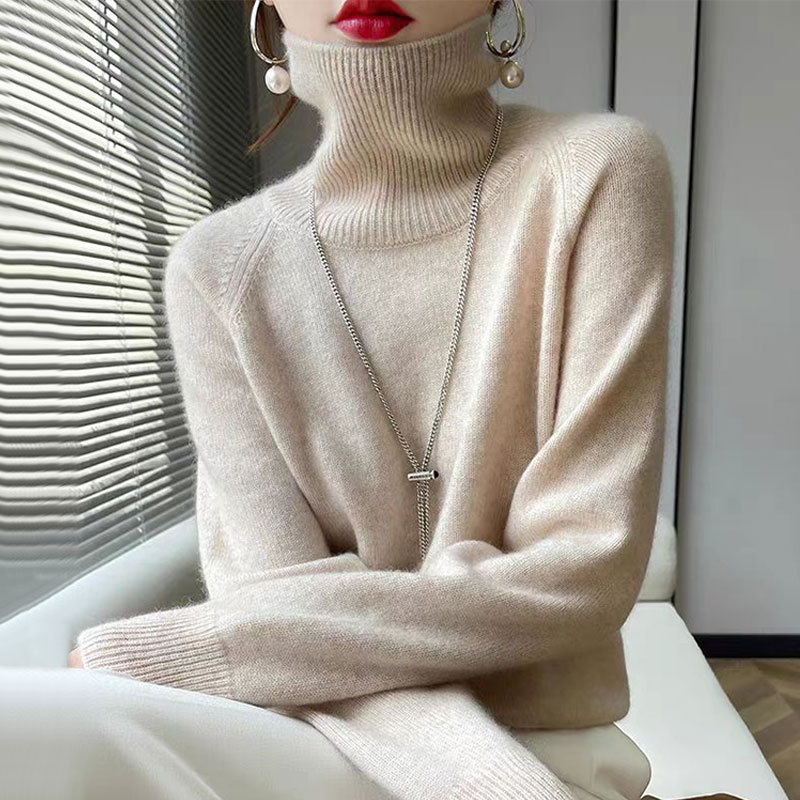 【メーカー直供】高襟のニットの底のシャツを積んで、秋冬の新型の純色の百合のゆったりした洋風のセーターの女性
