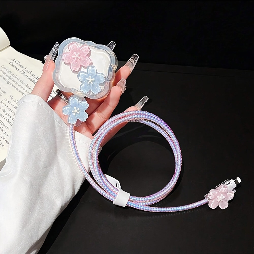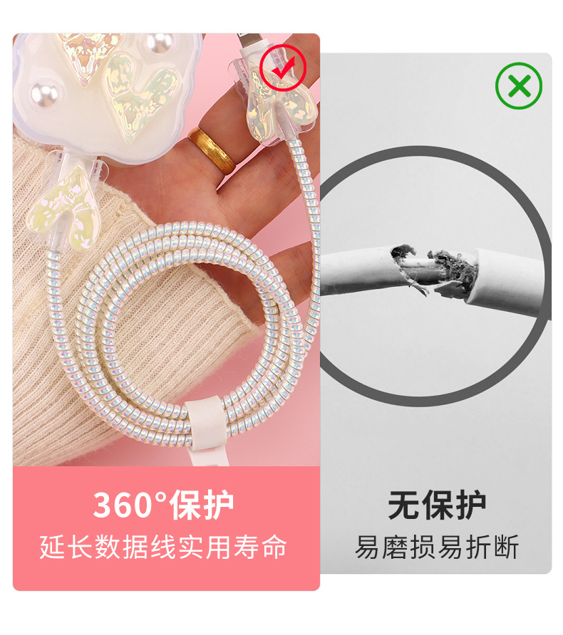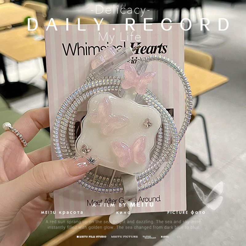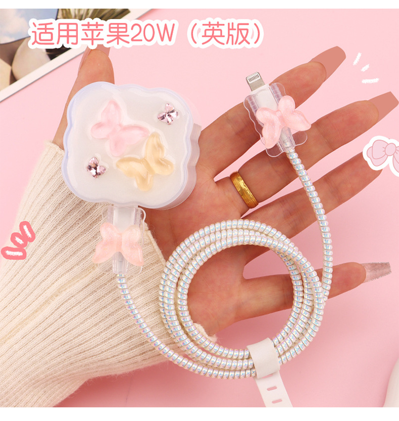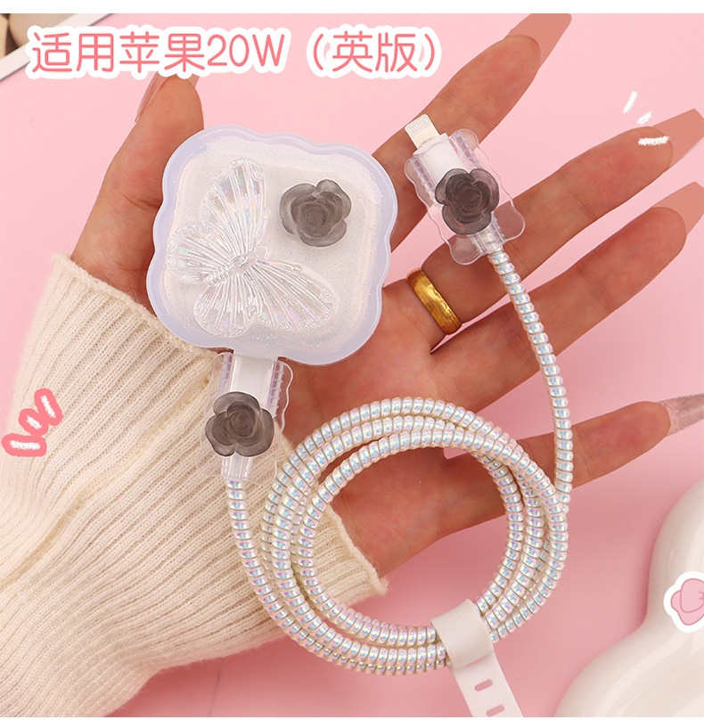 ピンクの蝶のデザインの接着剤保護カバー、Appleのデータケーブル、イヤホンケーブル、携帯電話の急速充電器(20W)に適しています。