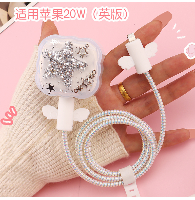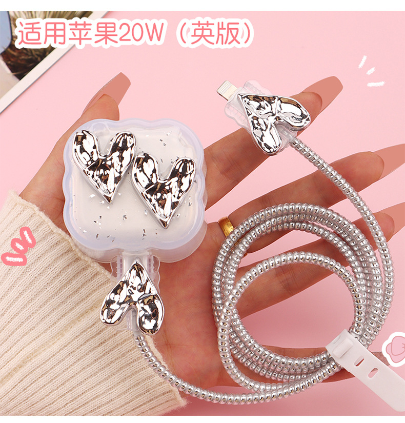 アップル18/20w急速充電シルバー充電器保護ケース充電ヘッド保護カバーソフトケース片面カラー絵