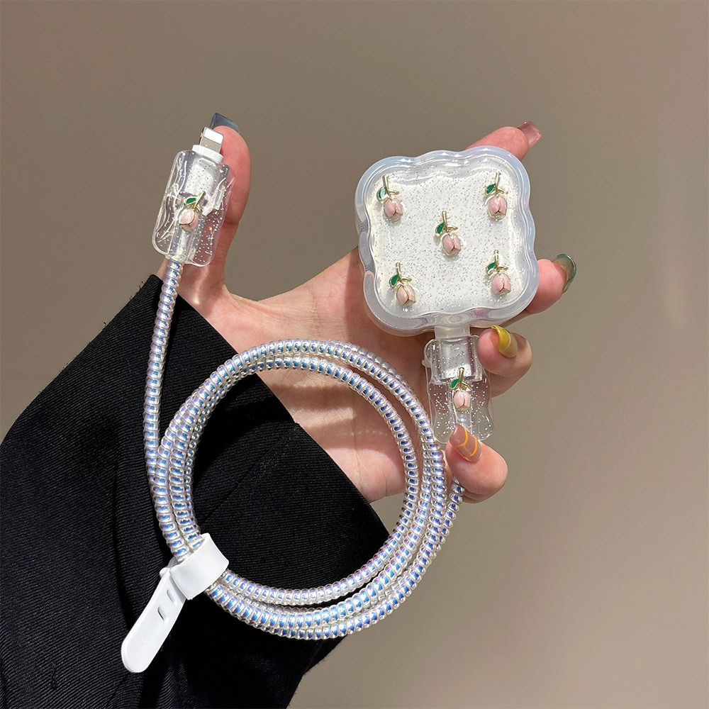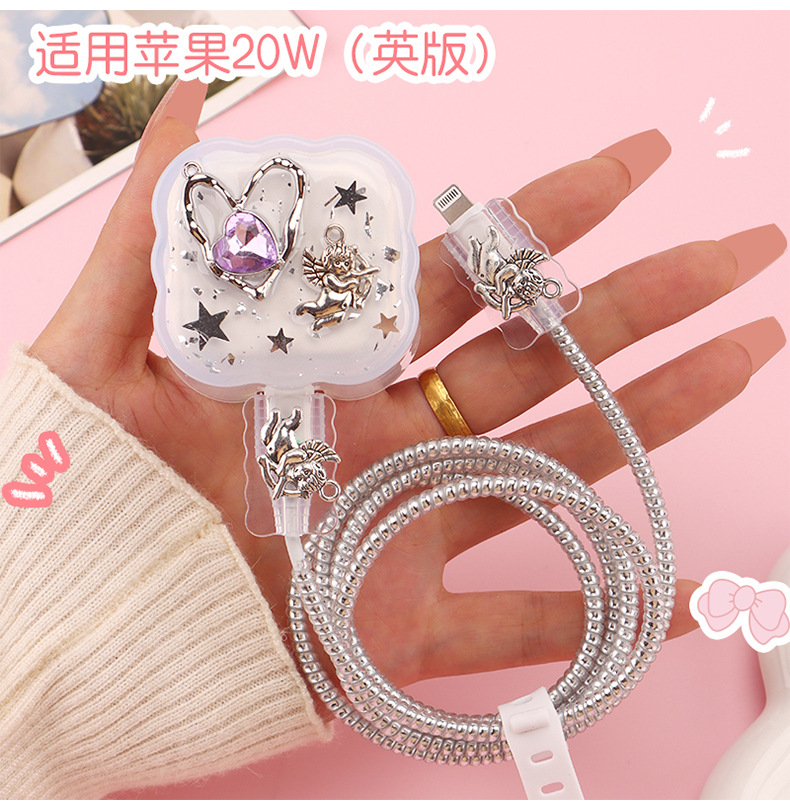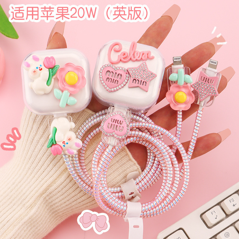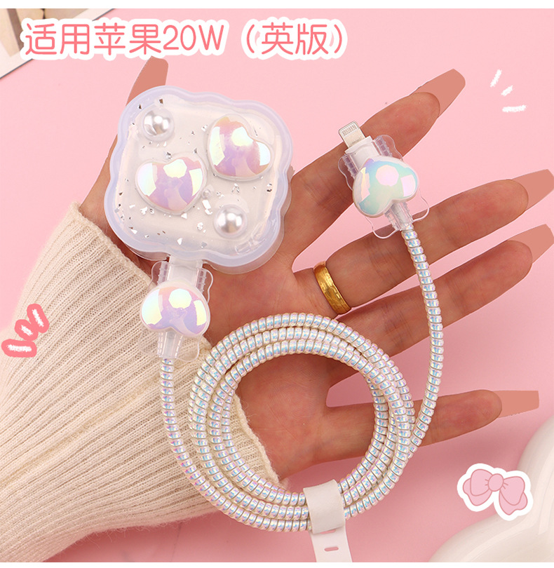 少女粉色系列数据线保护套20w适用苹果快充iPhone软充电器壳