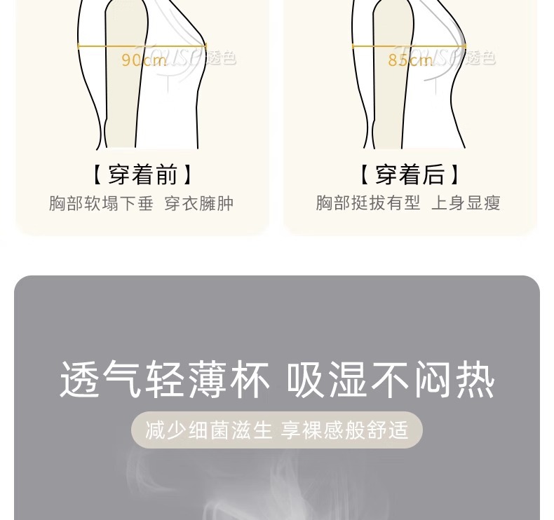 無傷の下着の女性の薄いタイプの大きい胸は小さくて副乳を収めて垂れ下がることを防ぎます。