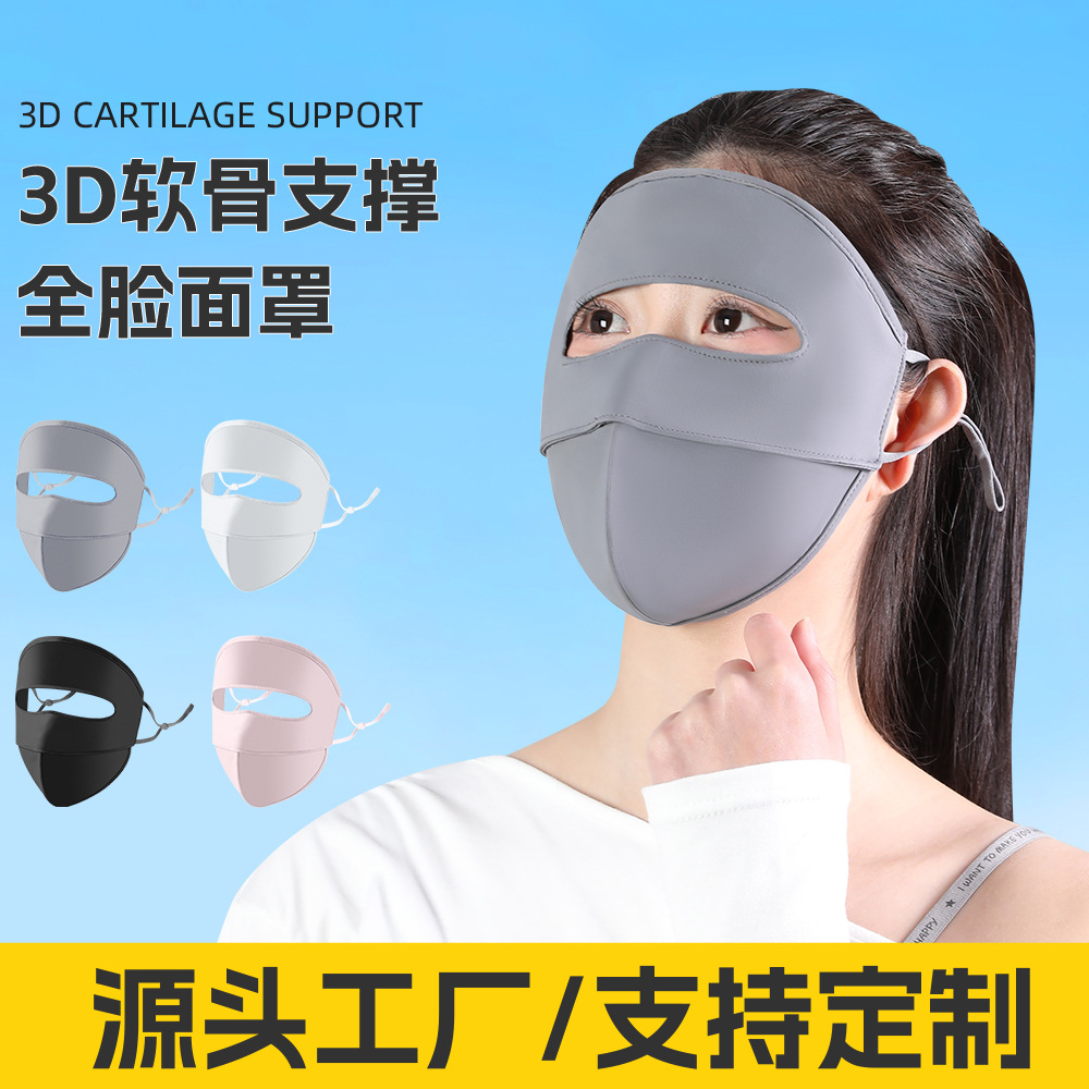 女性用3D立体フルフェイス日焼け止めマスク、夏用紫外線防止軟骨サポート、顔に密着しない通気性のあるフェイスマスク