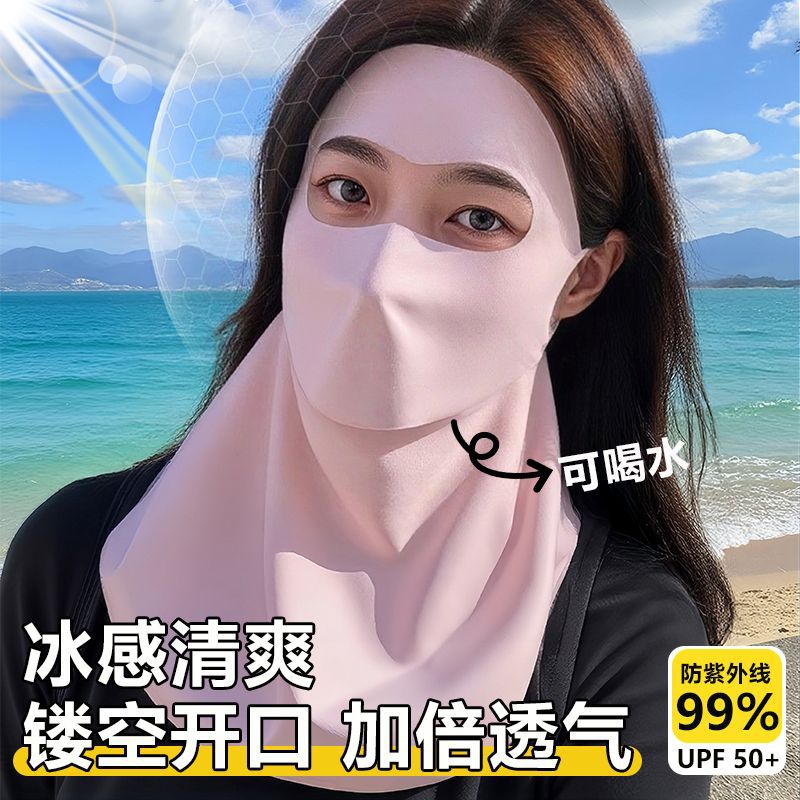 アイスシルク日焼け止めマスク女性の夏フルフェイス日焼け止め飲料水首と顔オールインワンサイクリング立体サンシェードマスク