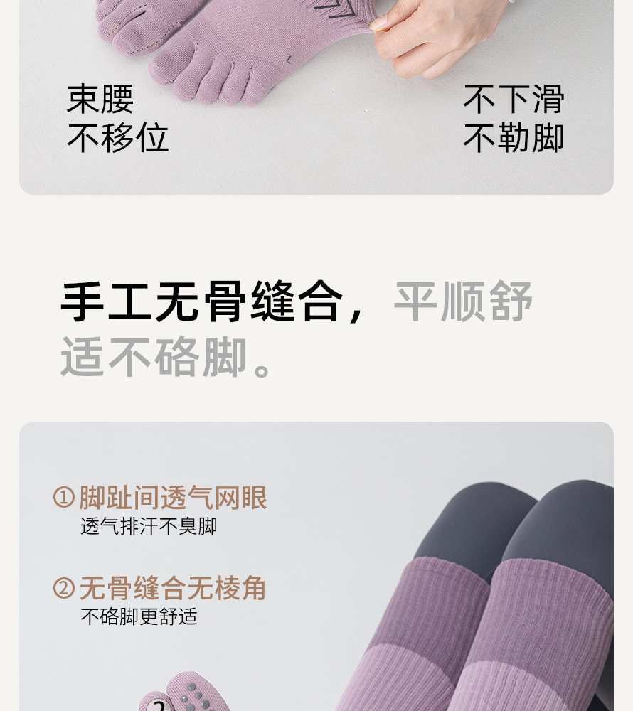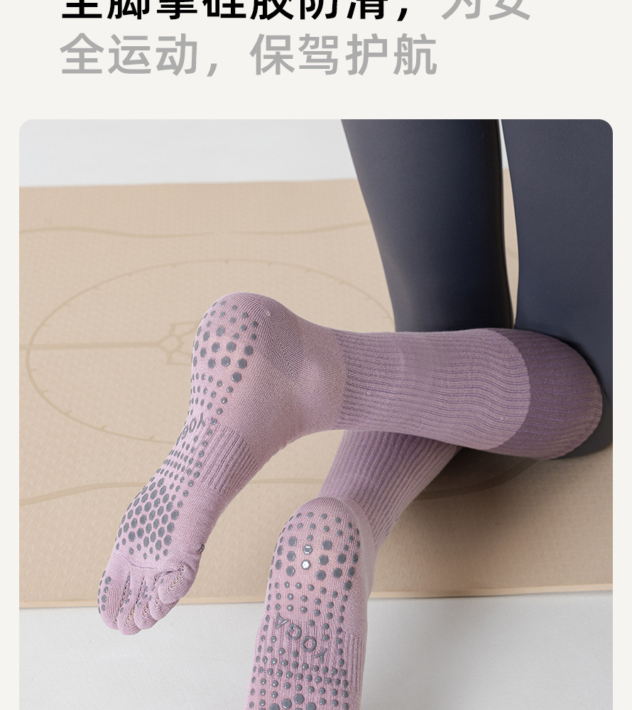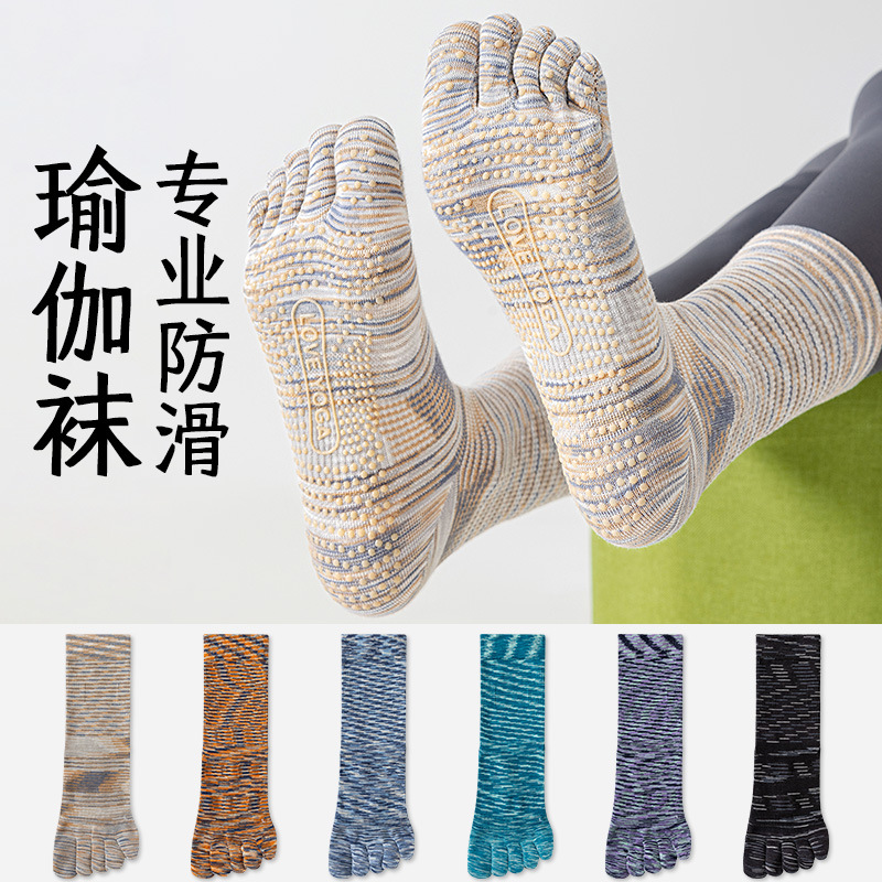 ヨガソックス春と夏のミッドチューブ5本指滑り止めプロフェッショナル女性屋内スポーツ滑り止め5本指ソックスフィットネスダンス滑り止め