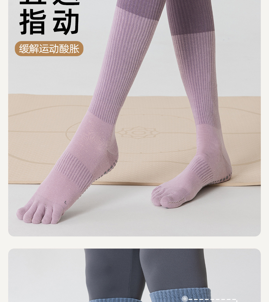五指ヨガソックス子供の専門運動滑り止め秋冬中長筒分足指プラティフィットネス下腿靴下長