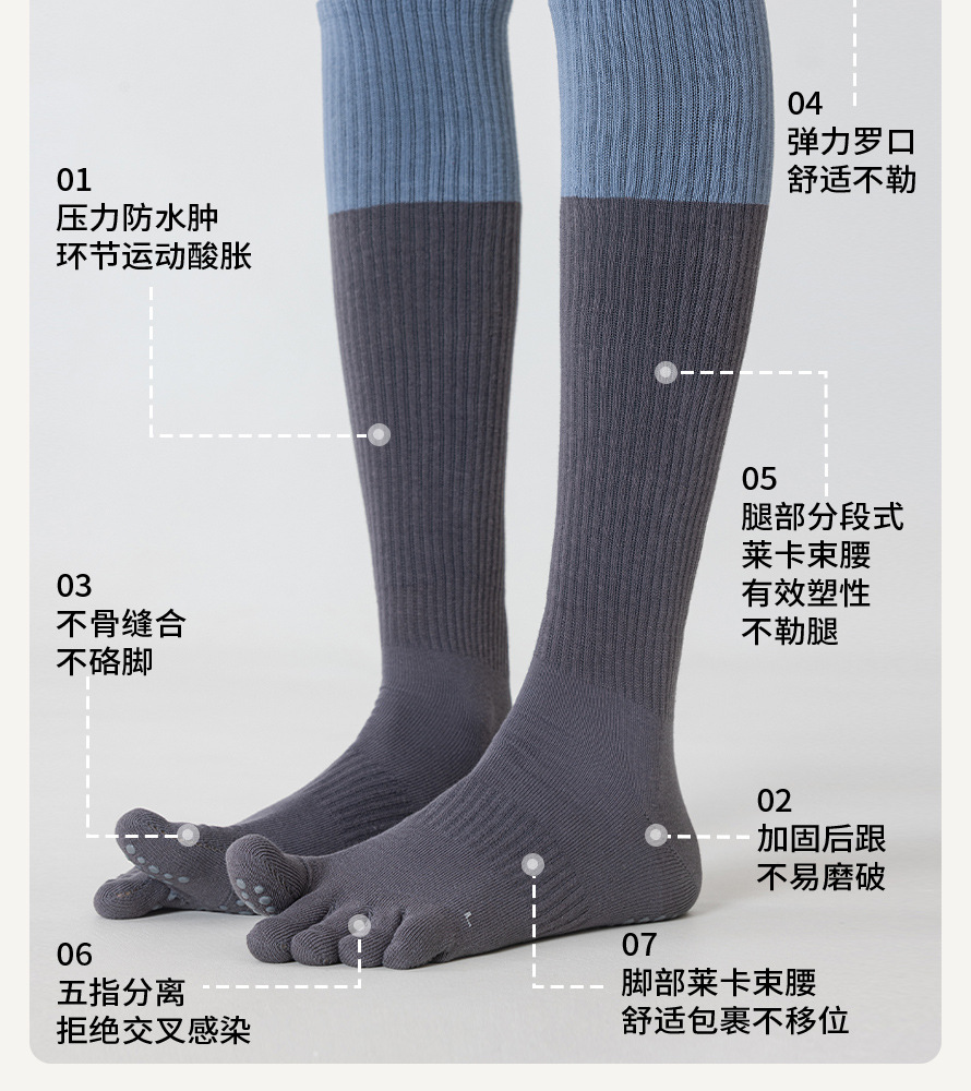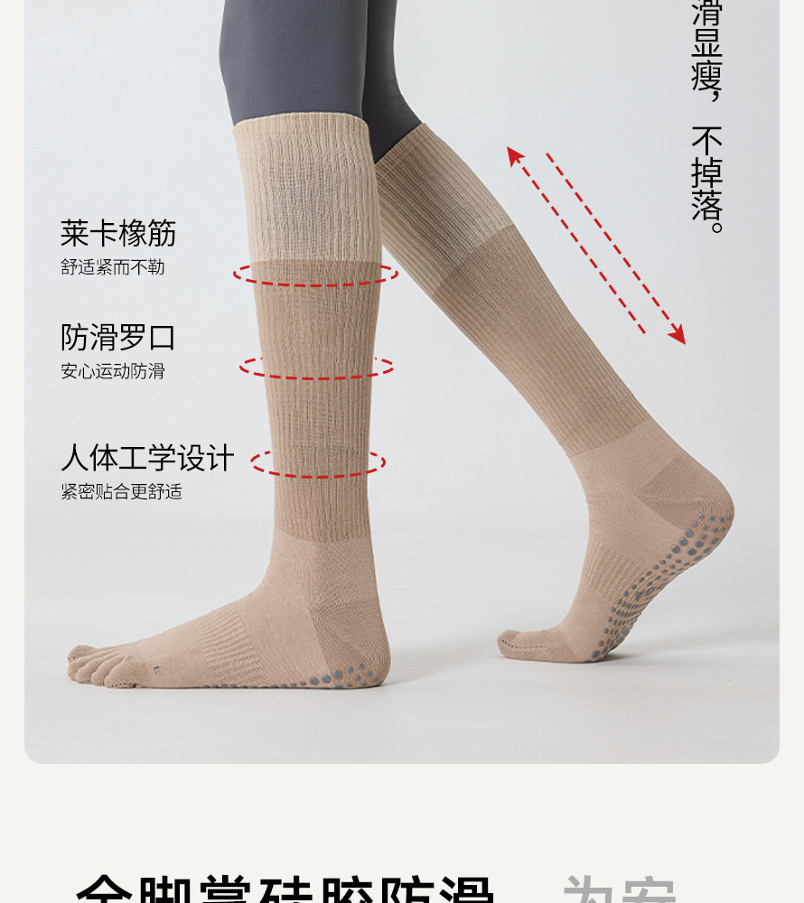 瑜伽袜子女五指袜中筒袜室内普拉提健身运动专业防滑分趾无骨长袜