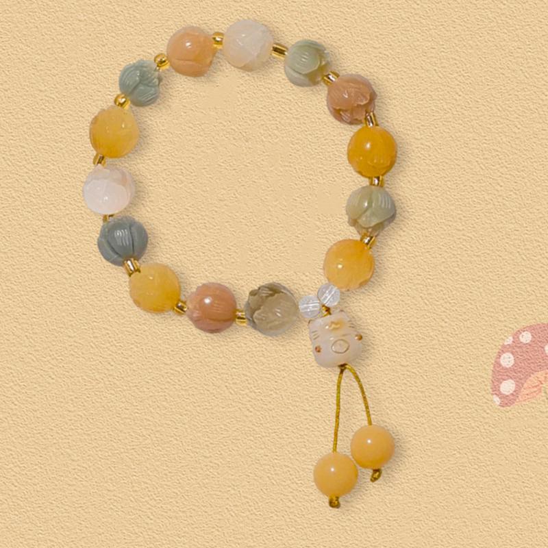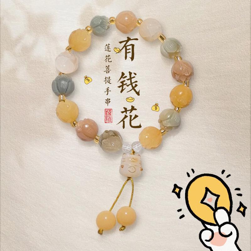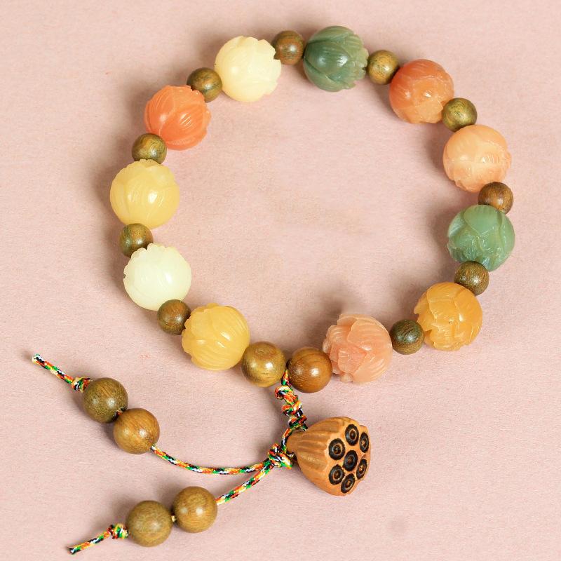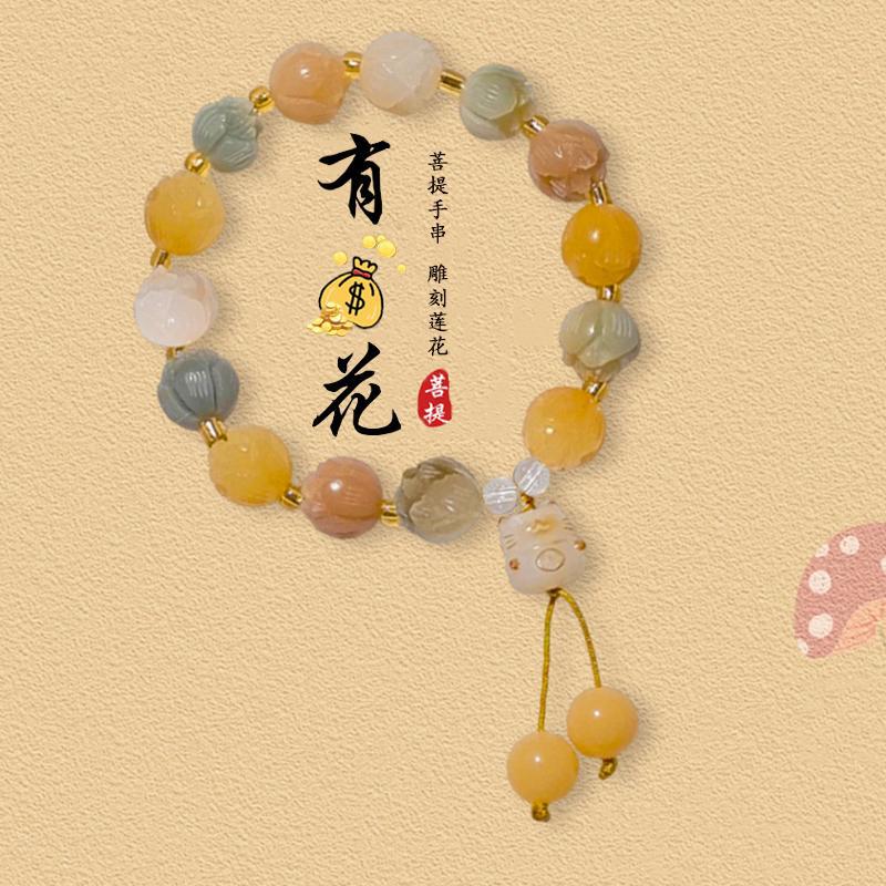 人気の翡翠クリームイエローと白翡翠菩提ブレスレット蓮の花スタイルシングルサークルブレスレット卸売屋台エスニックスタイル女性
