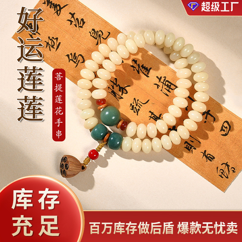 天然白玉菩提根手串多宝菩提子双輪仏珠ブレスレット回紋と蓮の花のペンダント