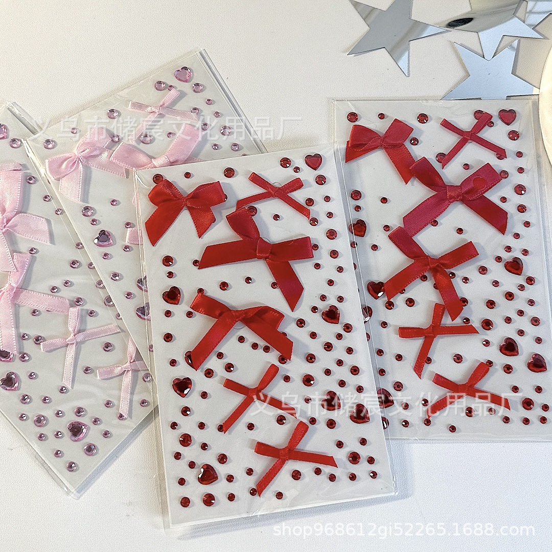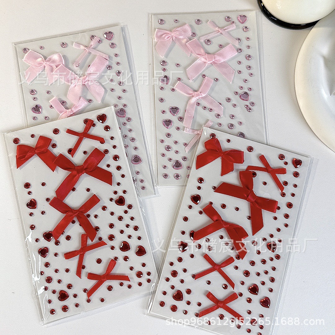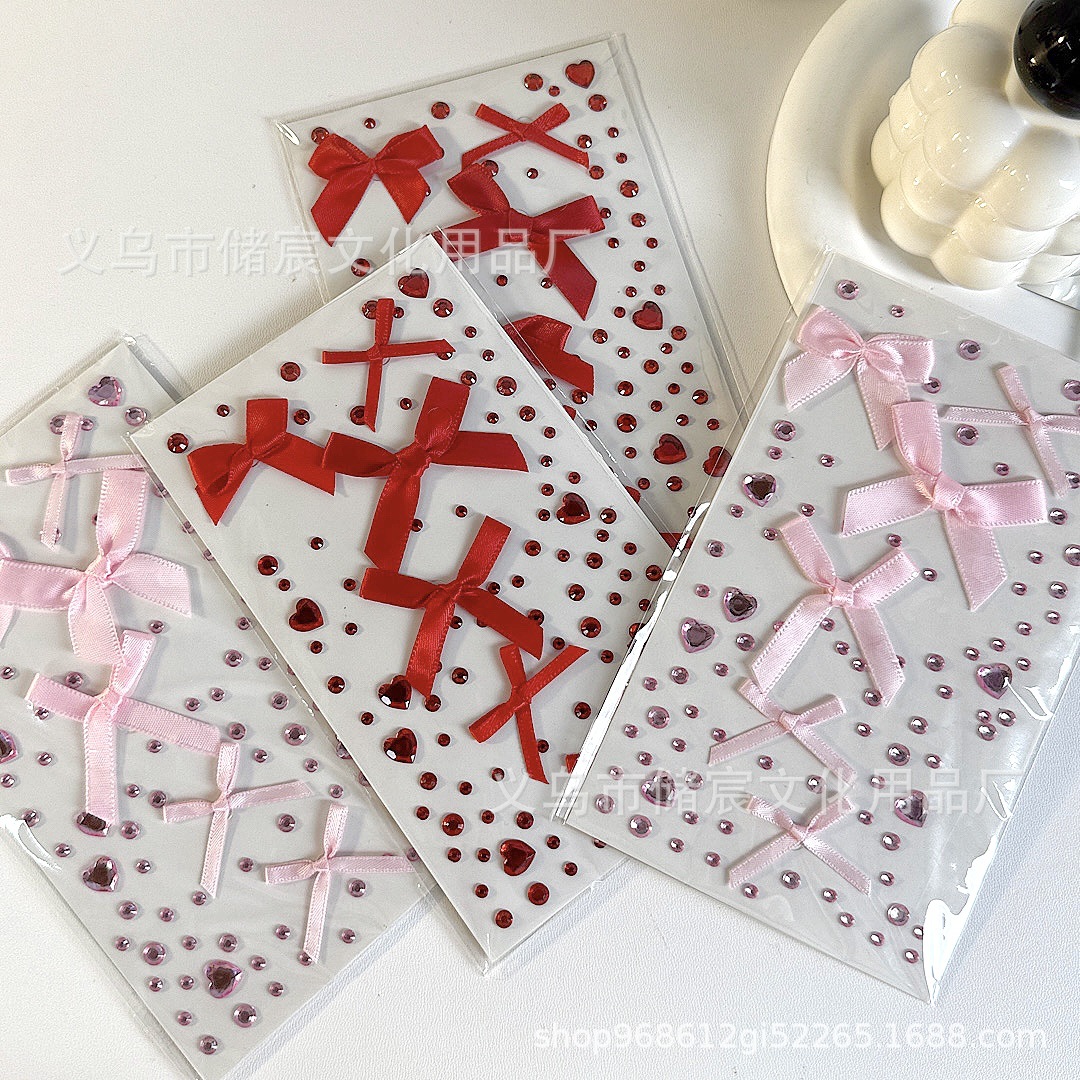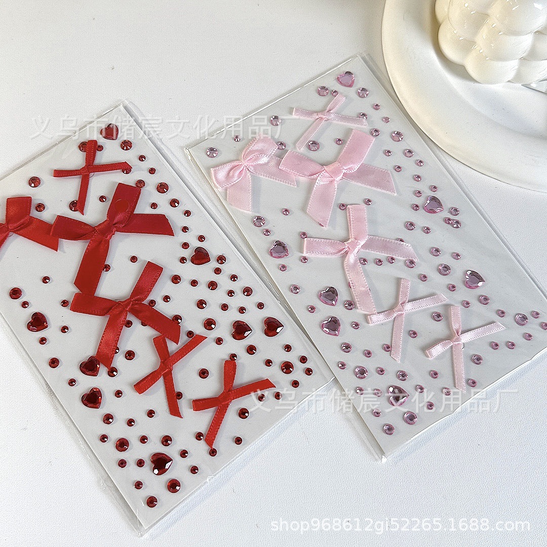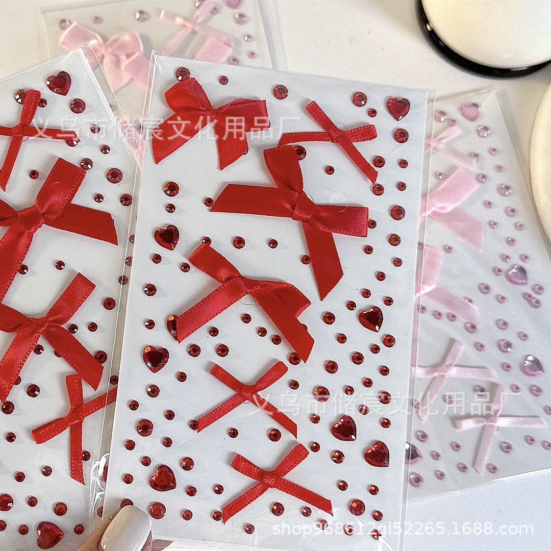 ピンクのリボンラインストーンステッカー,赤いリボンのラインストーンステッカー