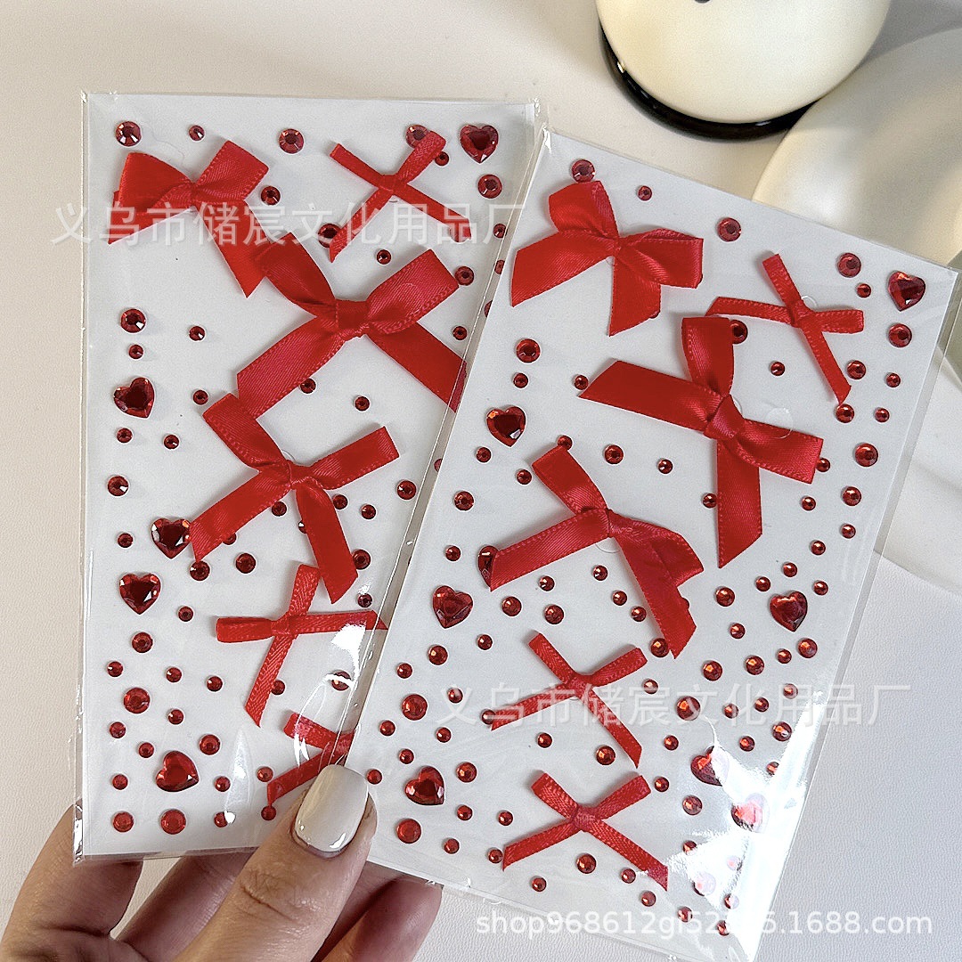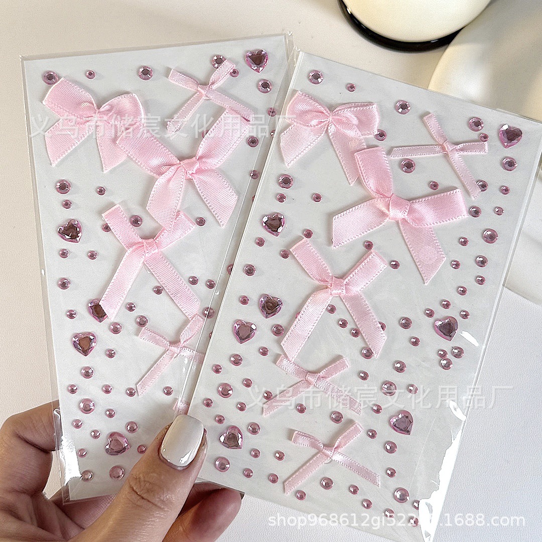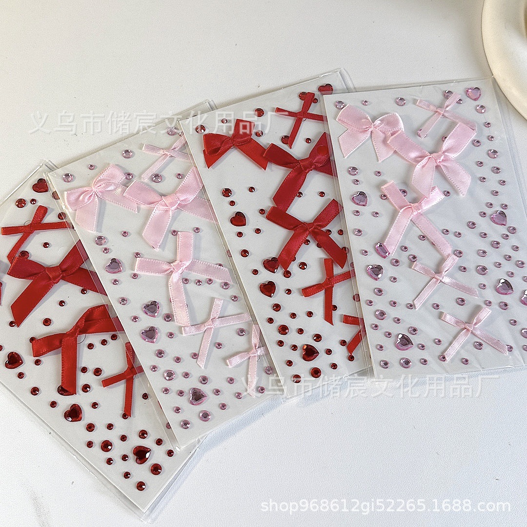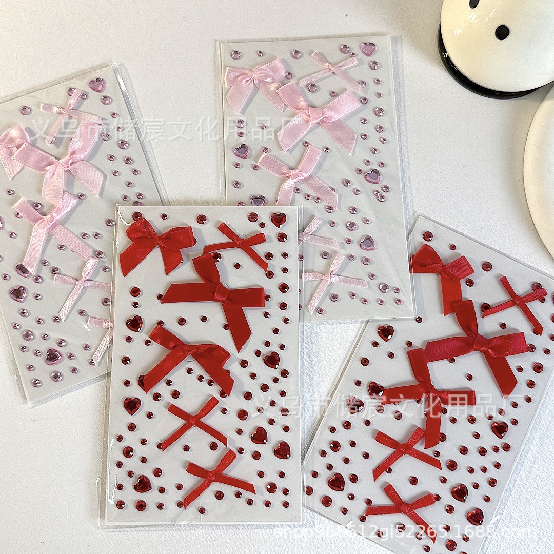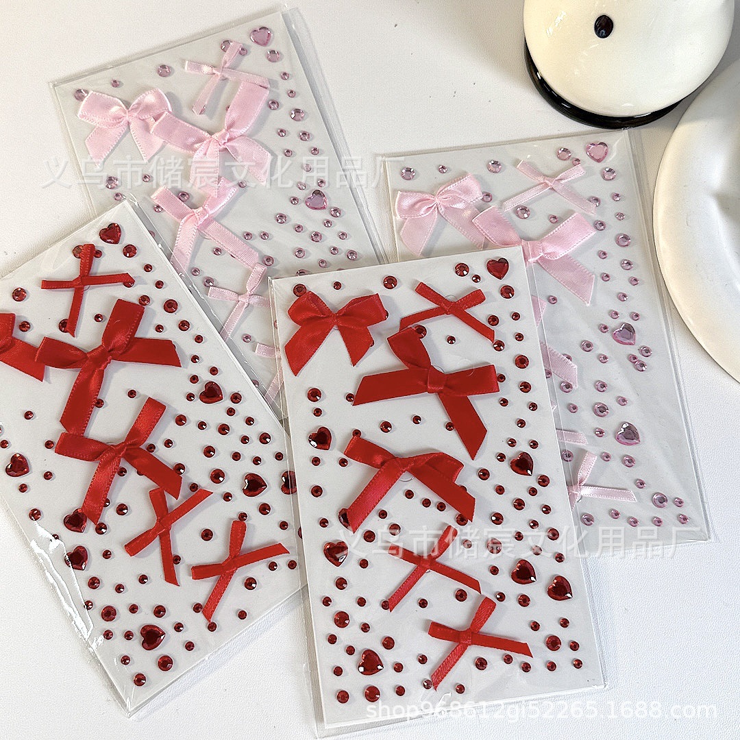 ピンクのリボンラインストーンステッカー,赤いリボンのラインストーンステッカー