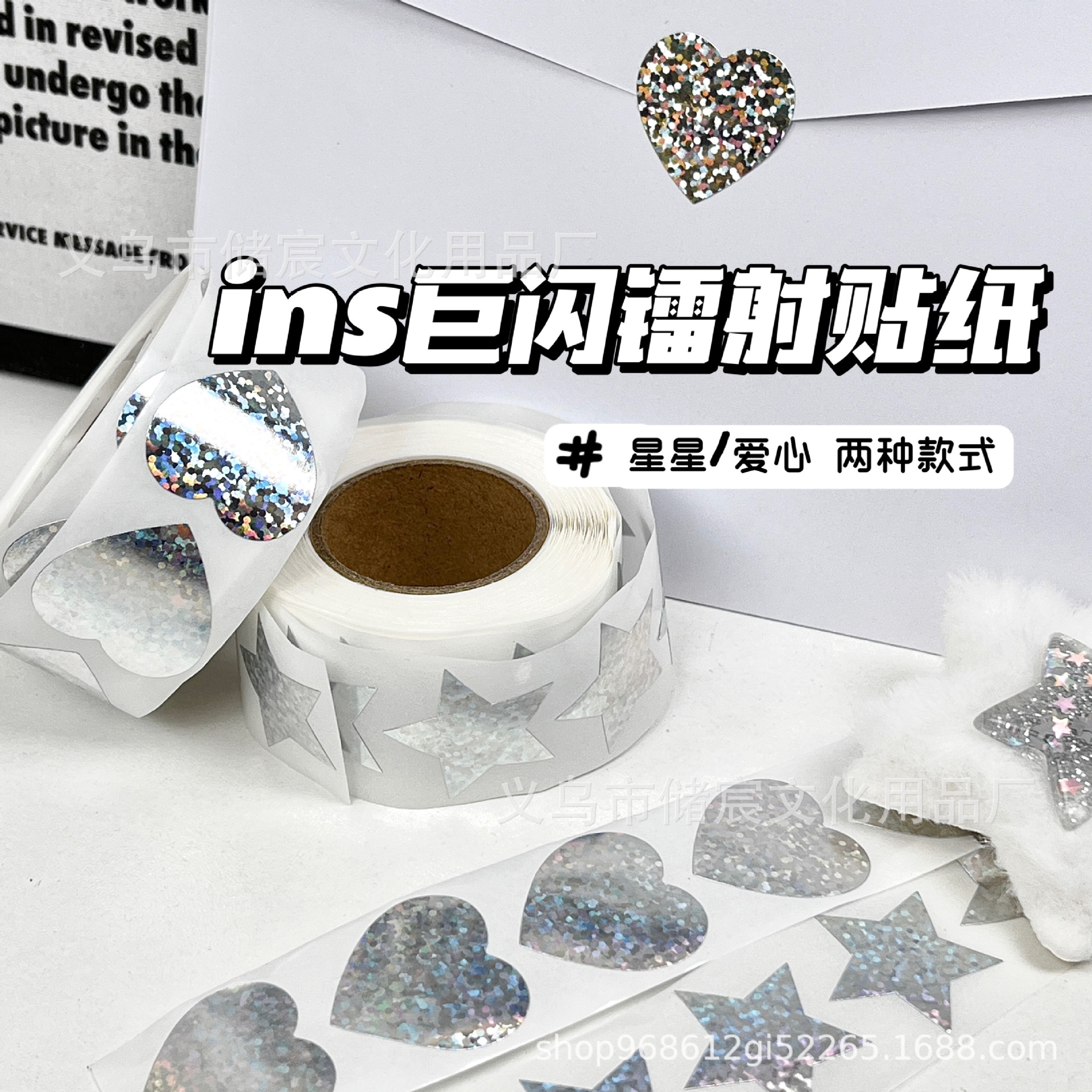 Insキラキラレーザー愛シール円形愛星装飾防水シール手帳シール
