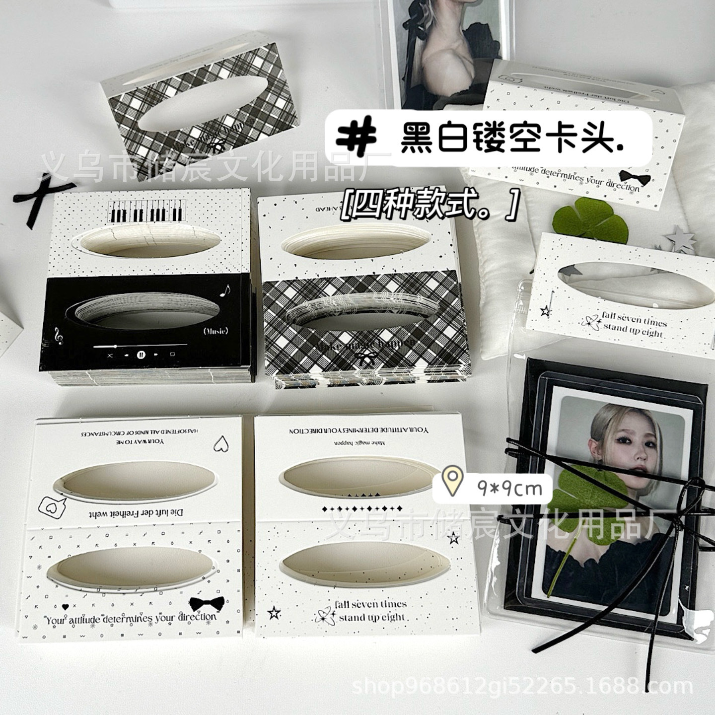Ins風オリジナル白黒透かし彫りカード二つ折りカード洗練された包装包装プレゼント材料ミニDIYカード