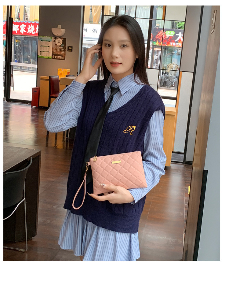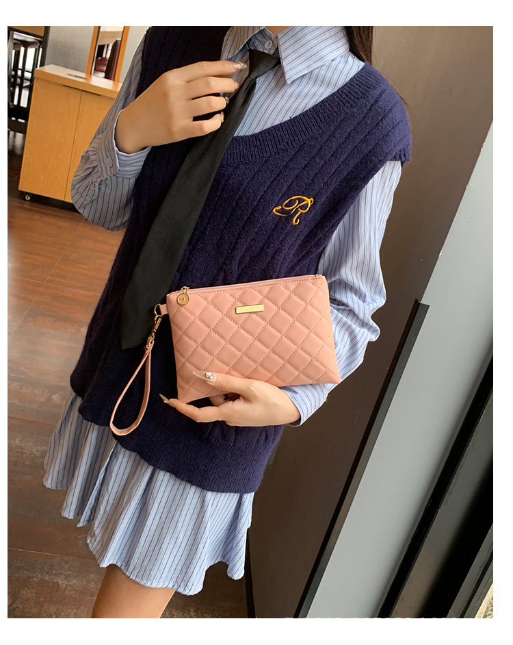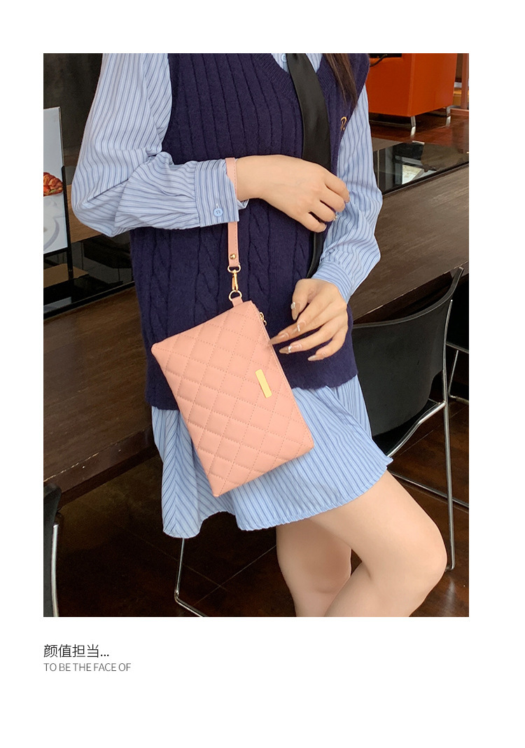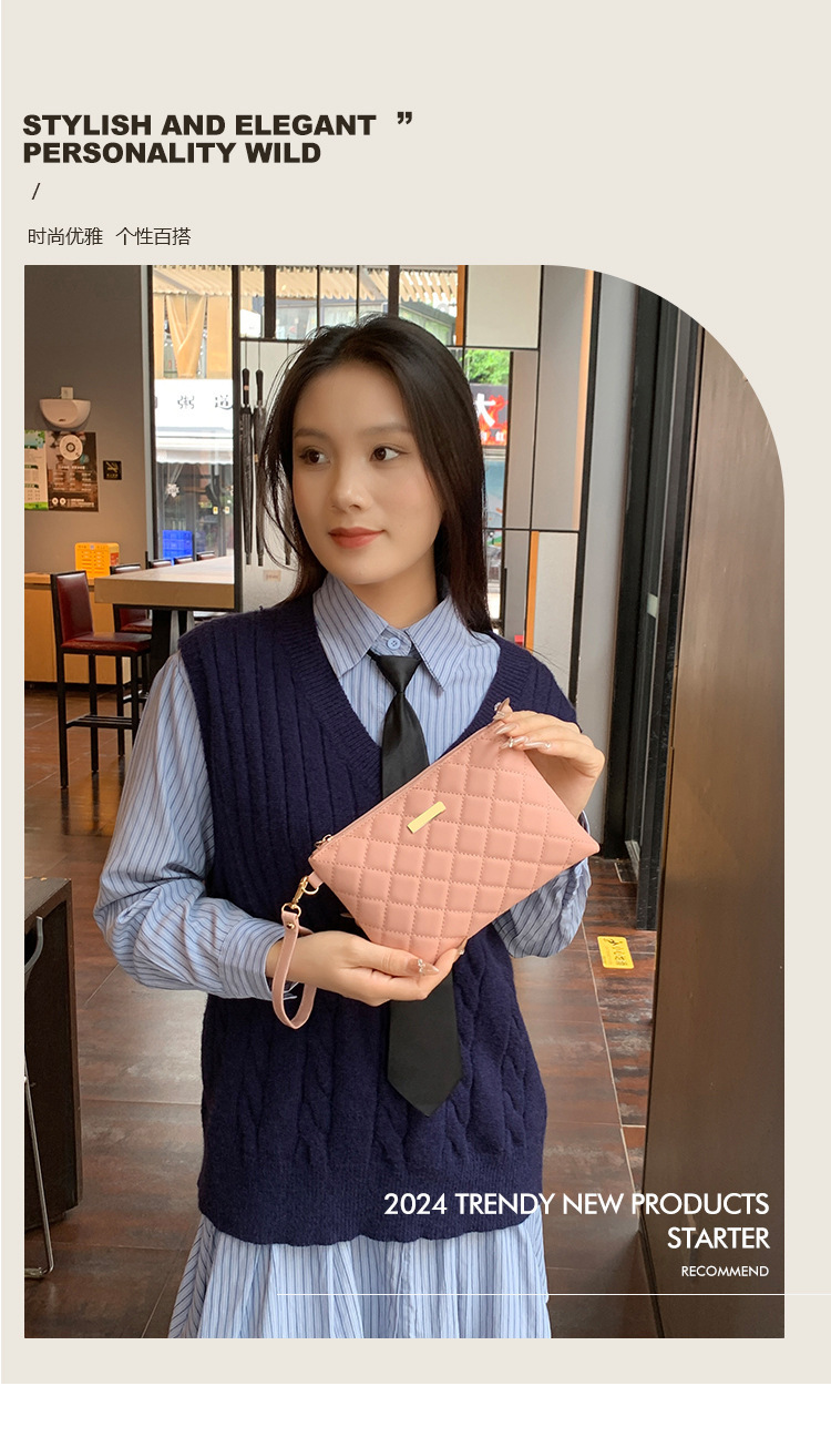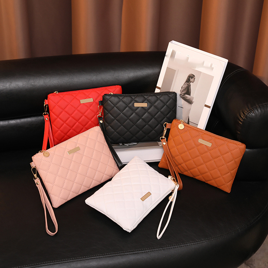 シンプルなファッション菱格刺繍キルティング贅沢なファッションPU素材の女性が国境を越えた卸売りバッグを手に持っている