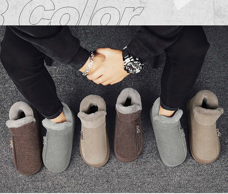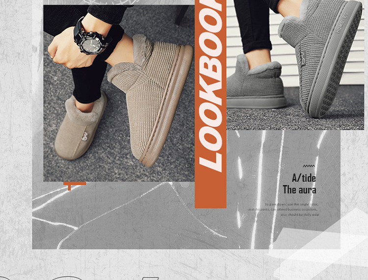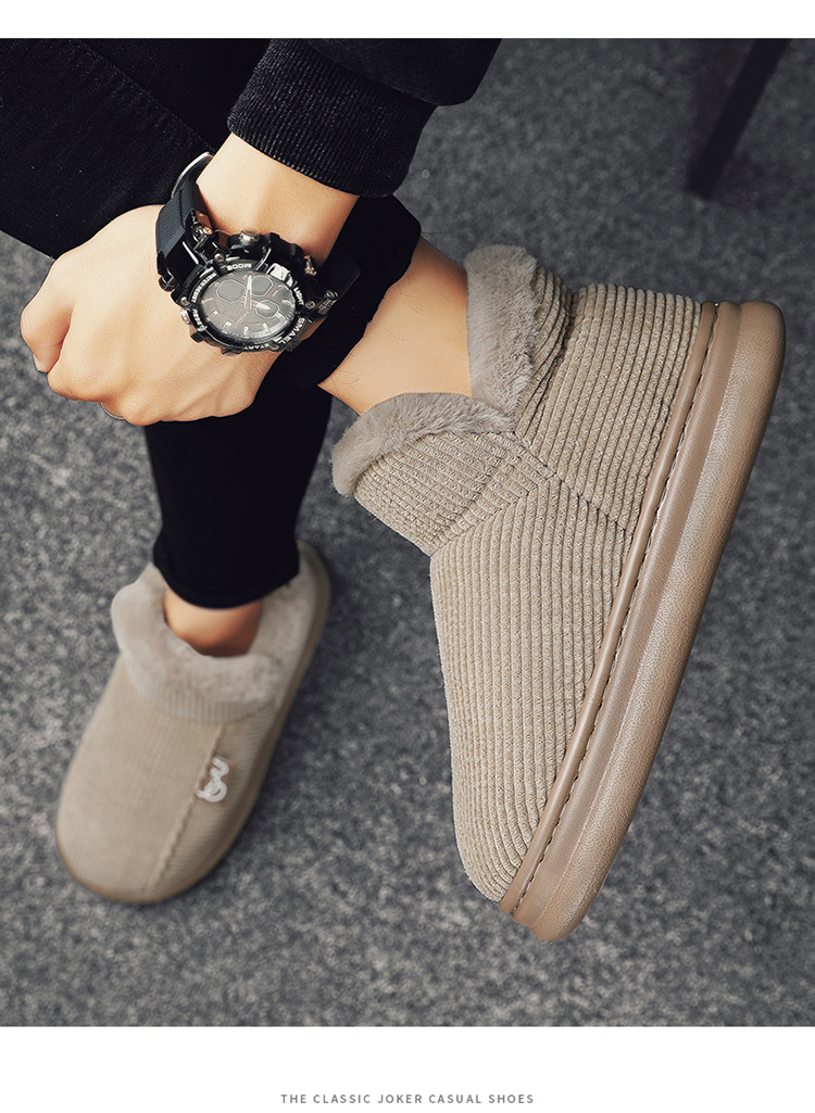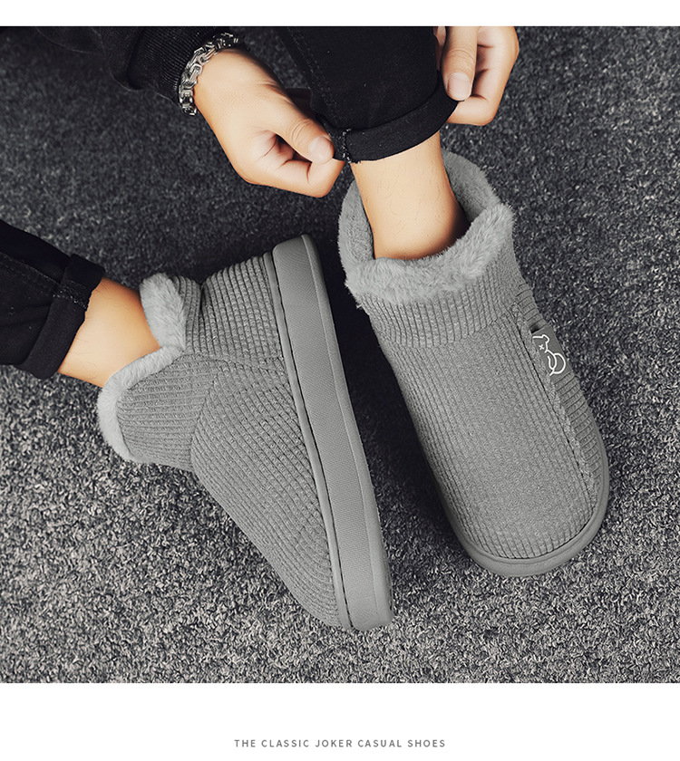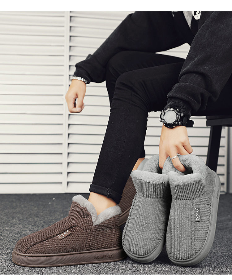 綿のスリッパを包む男性は冬にベルベットをつけて保温します。