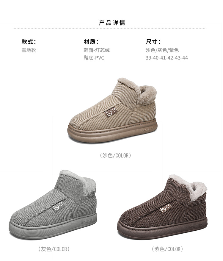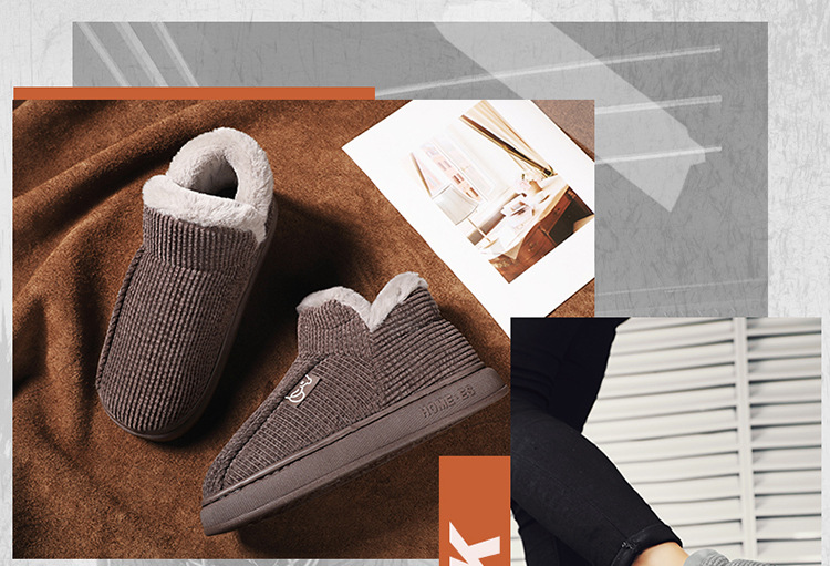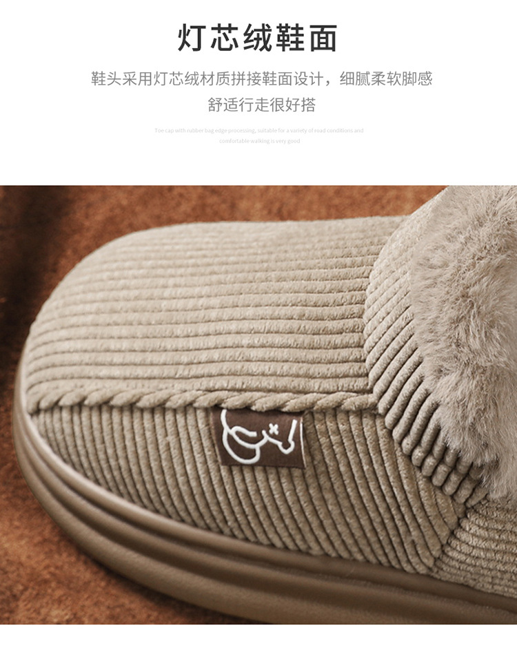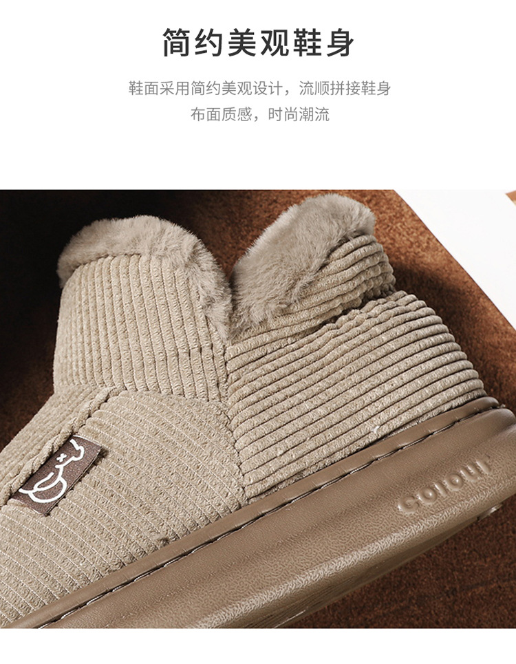 男女とベルベットのバッグと秋冬の家庭用牛筋底滑り止め冬保温綿スリッパ布芸家居靴