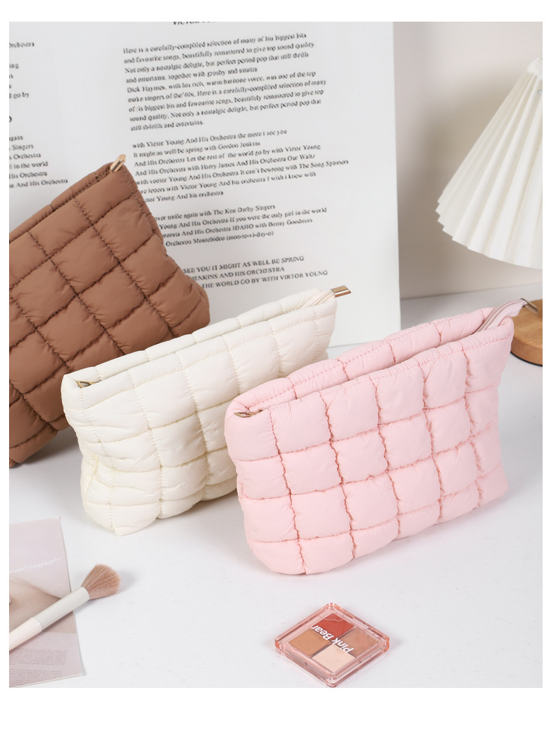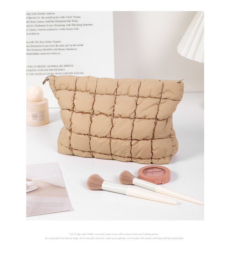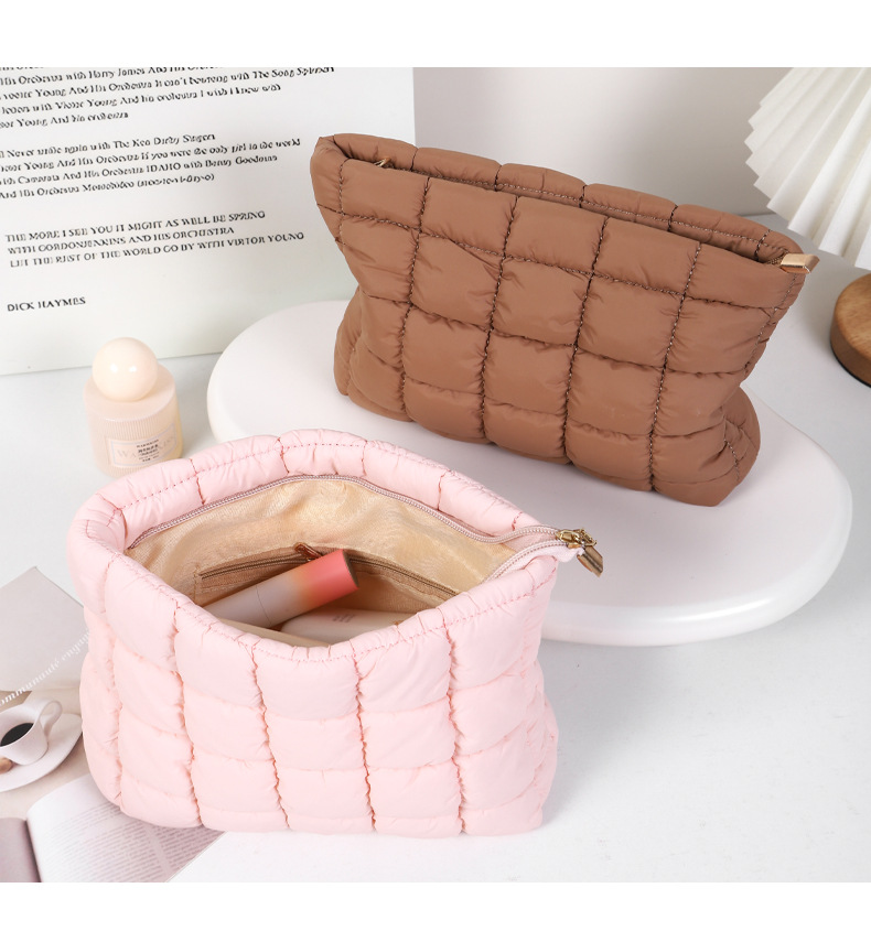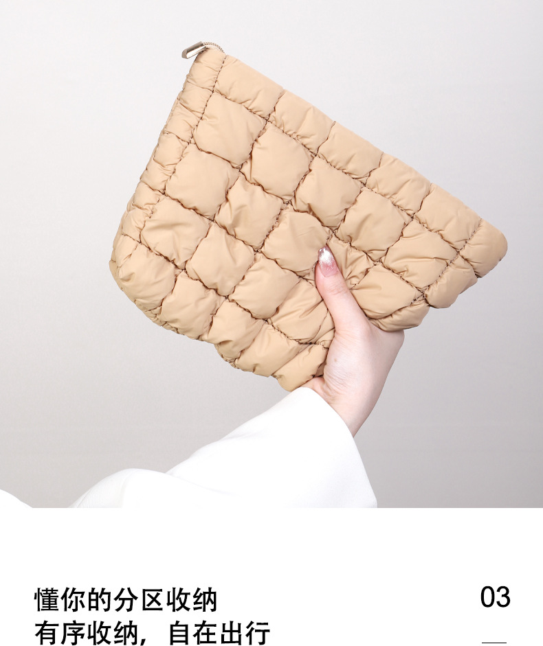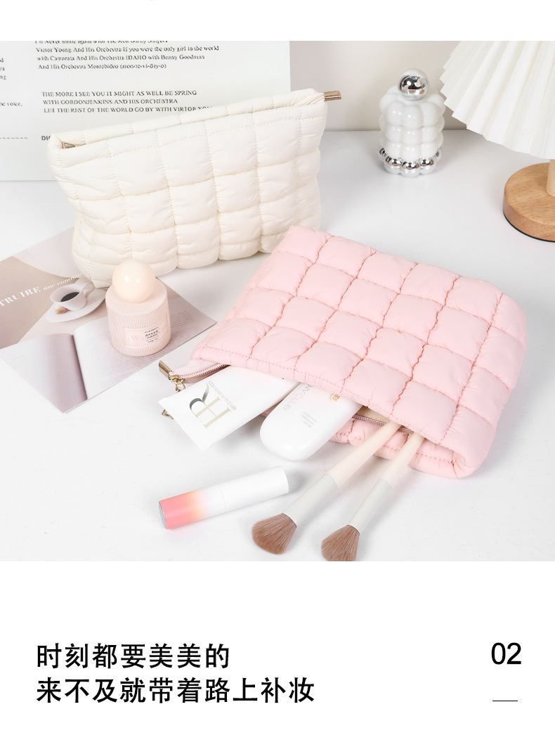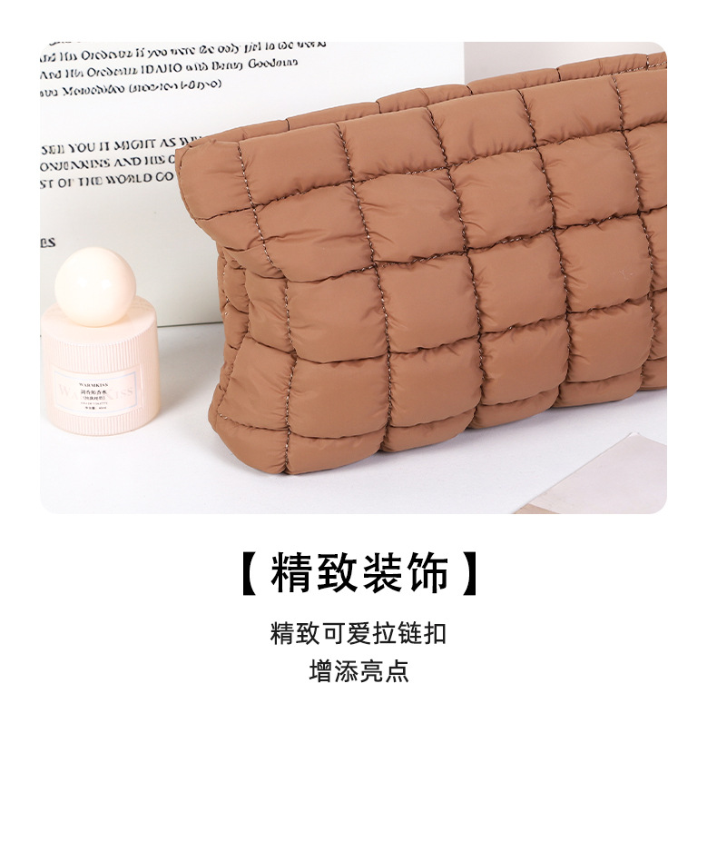 Ins Fengyunduo ダウン化粧品バッグ女性の小型ポータブル旅行ポータブル大容量ハイエンド充填綿収納袋
