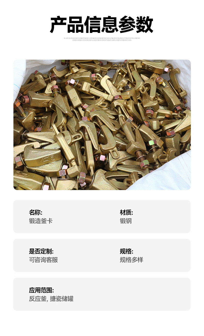 反応釜カード釜用カード鋳造釜カード亜鉛メッキ釜カード炭素鋼釜カード反応鍋カード留め具メーカー供給