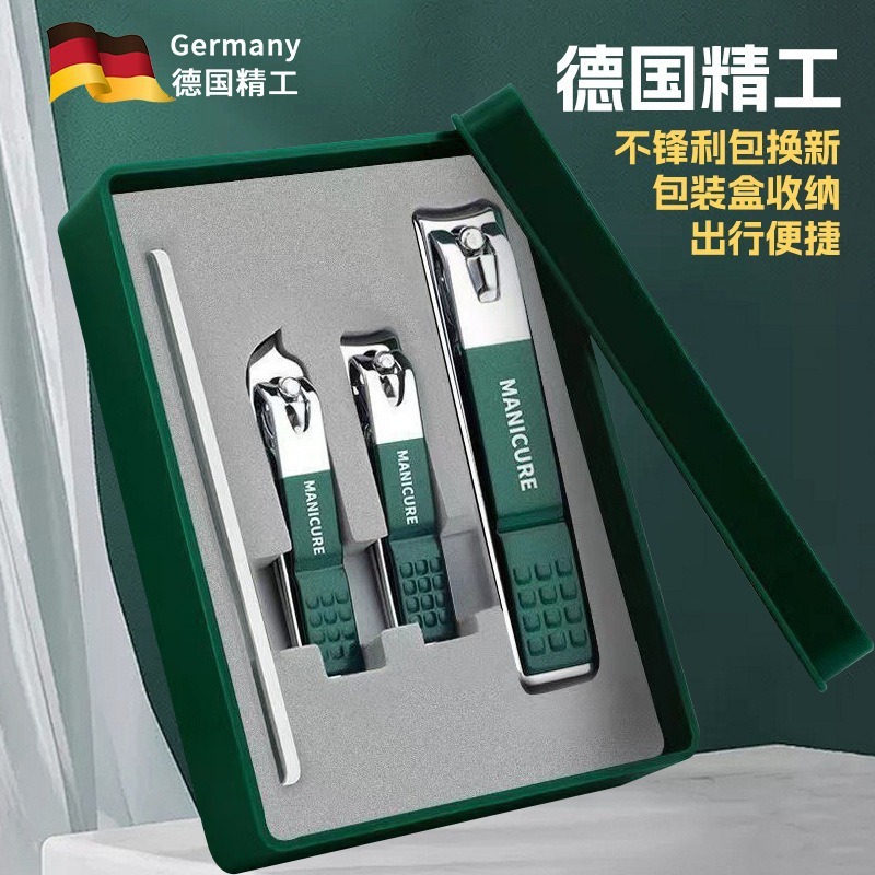 抖音同款墨绿色指甲刀套装家用指甲钳四件套指甲剪美甲工具批发