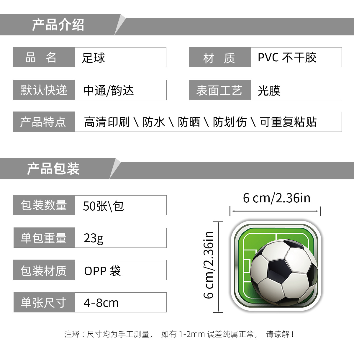 クロスボーダー50枚サッカー落書きステッカースポーツボール類防水装飾ステッカークリエイティブサッカー文房具ステッカー卸売