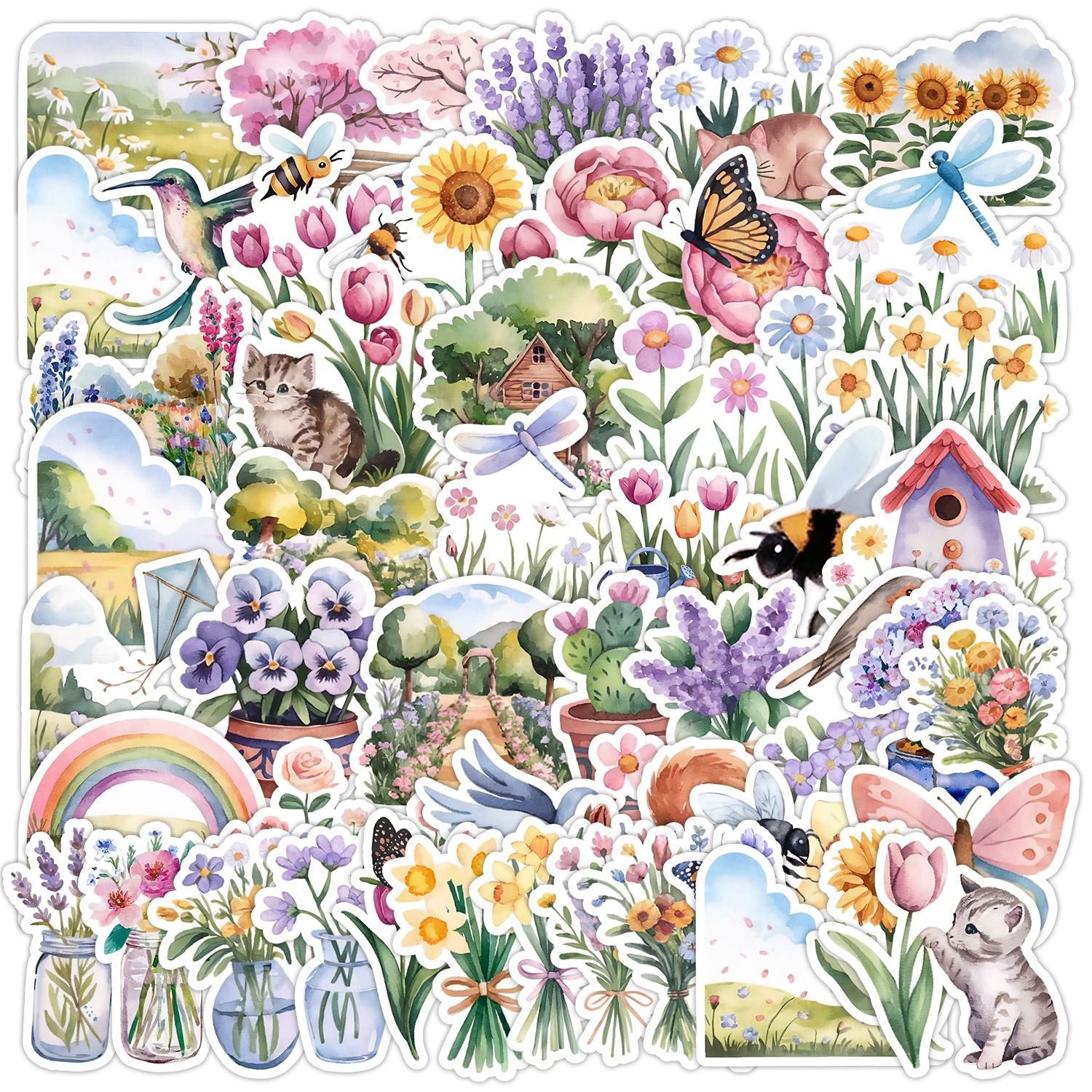 クロスボーダー50枚春シリーズ落書きシールコップパソコン防水装飾シール植物イラストシール卸売り