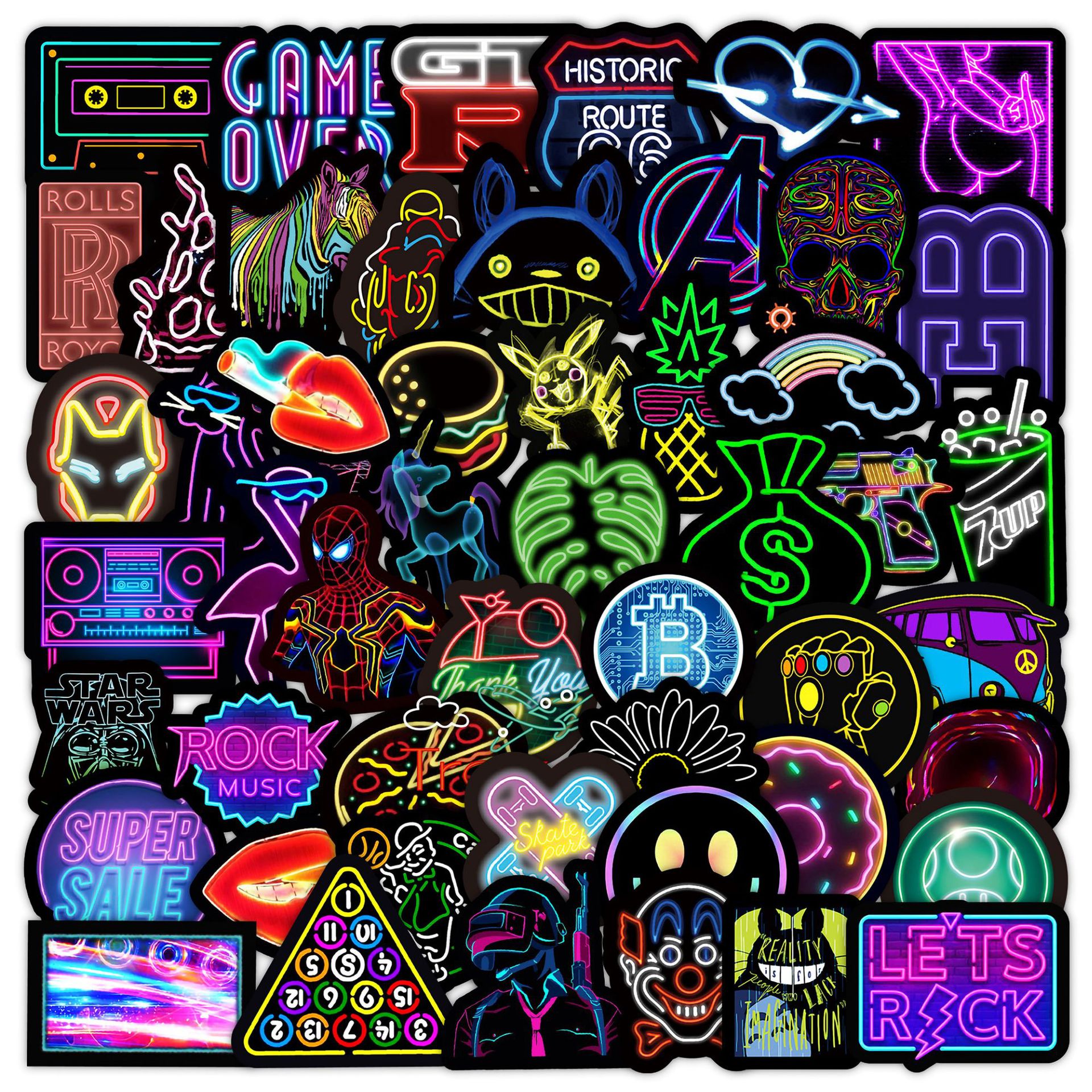 50枚のネオン落書きシール車のコップのノートパソコンは防水手帳シールを貼って卸売りします。