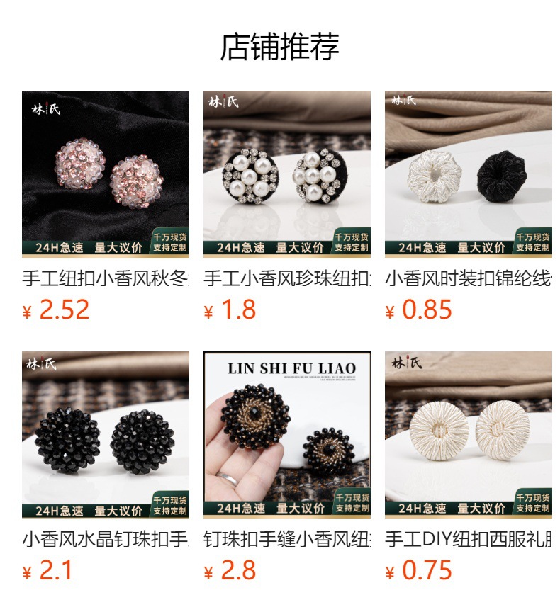 小香风手工大衣皮草扣子水晶玻璃手缝纽扣时尚diy外套服装装饰扣