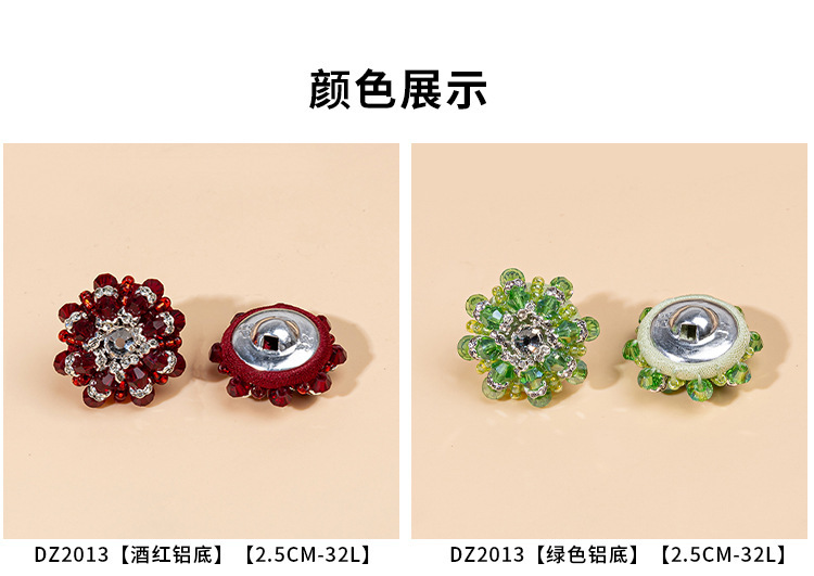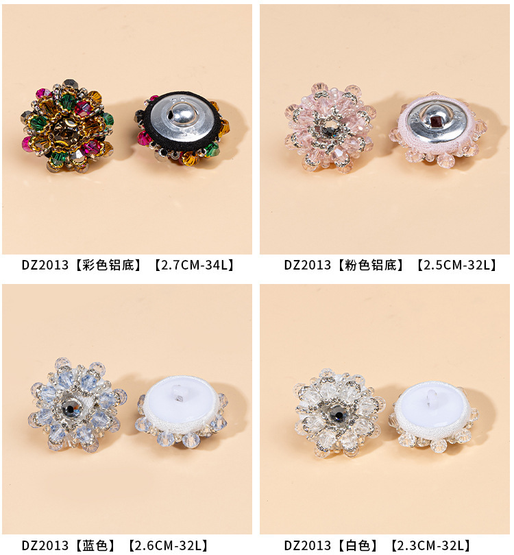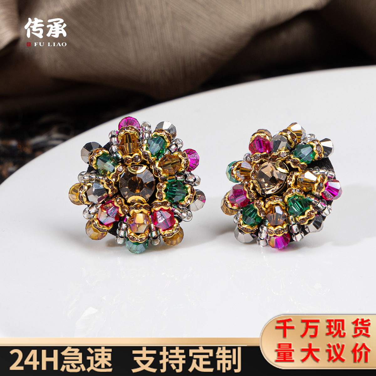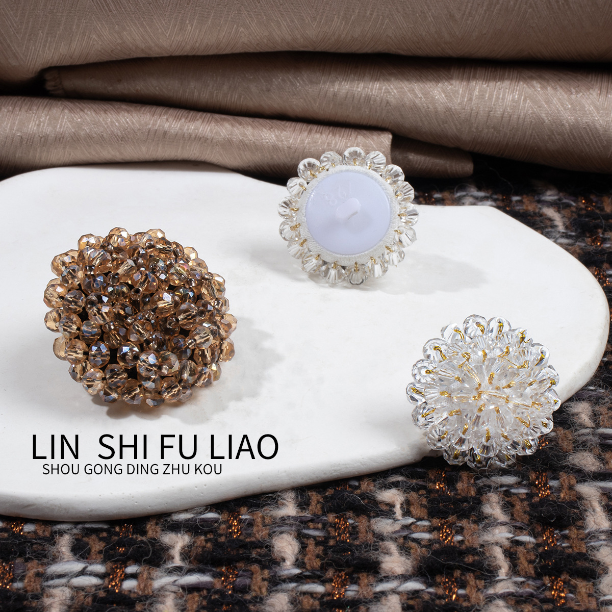 手作りビーズボタン、高級クリスタルガラス装飾ボタン、ファッショナブルな小さなフレグランスコート、毛皮コート装飾ボタン