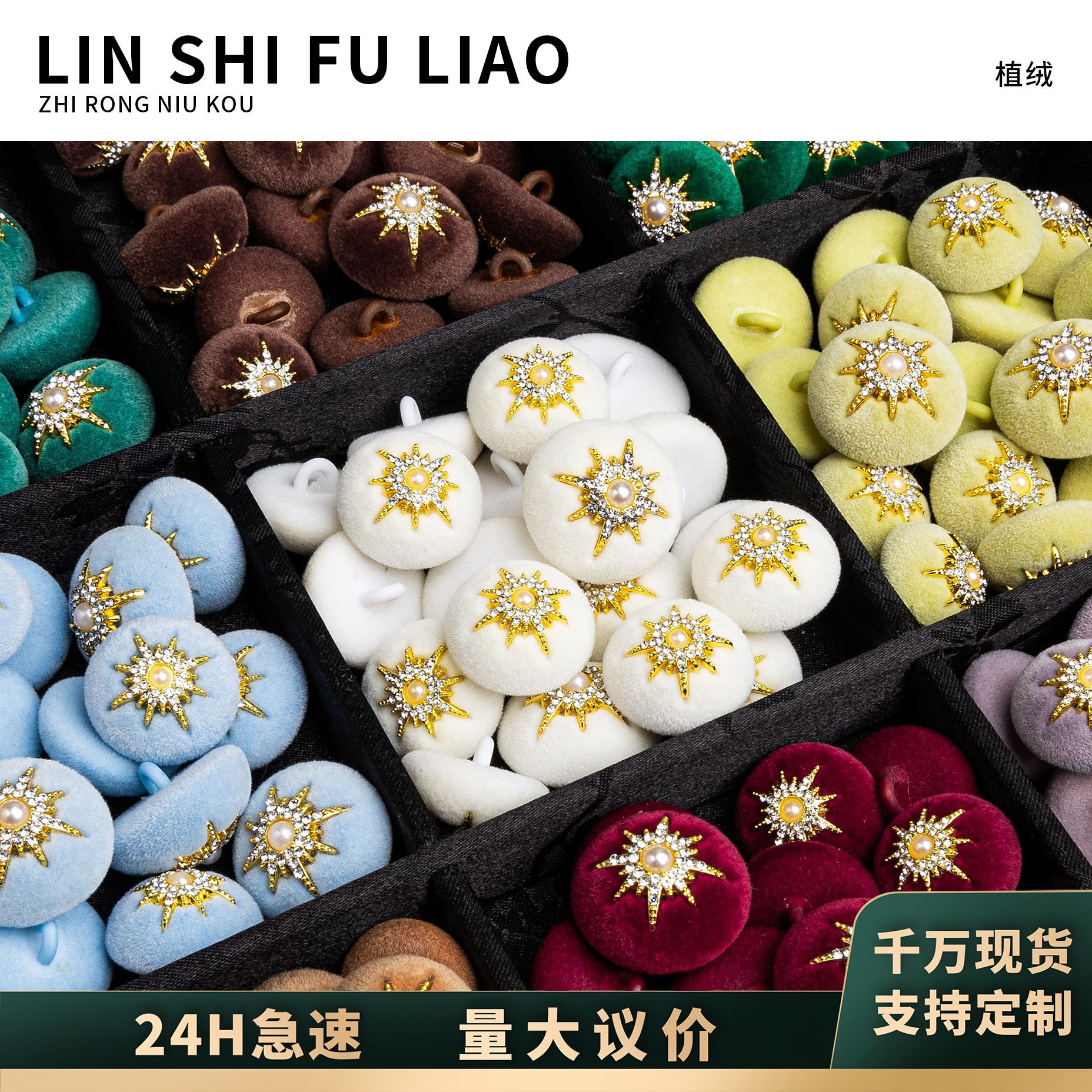 林氏植绒纽扣珍珠星星扣小香名媛风丝绒扣毛衣西装外套装饰辅料扣